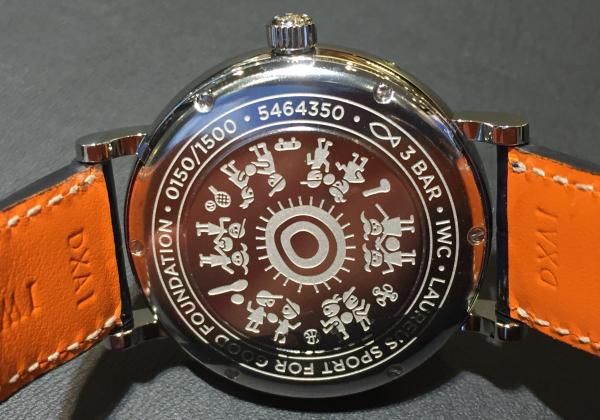 さらに裏蓋には、IWCシャフハウゼンが、財団との共同プロジェクトとして、子供や若者を対象にした絵画コンテストで、最優秀作品に選ばれた絵が、時計の裏に刻まれるのです!今回は「Time for Sport(スポーツのとき)」というコンテストのテーマで選ばれた絵が刻まれています!