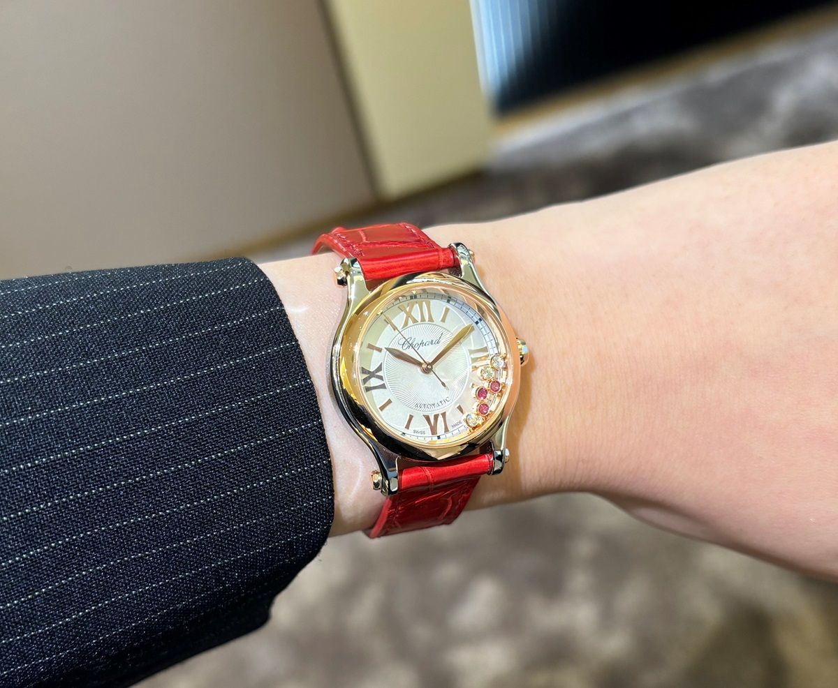 ハッピースポーツはムービングストーンと呼ばれる、腕の動きで中に入ったダイヤが揺れ動くショパールでも人気のシリーズです。