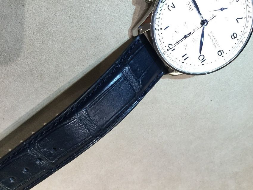 白い文字盤とも相性のいい、ブルーのアリゲーターバンドが爽やかな印象を与えてくれます。