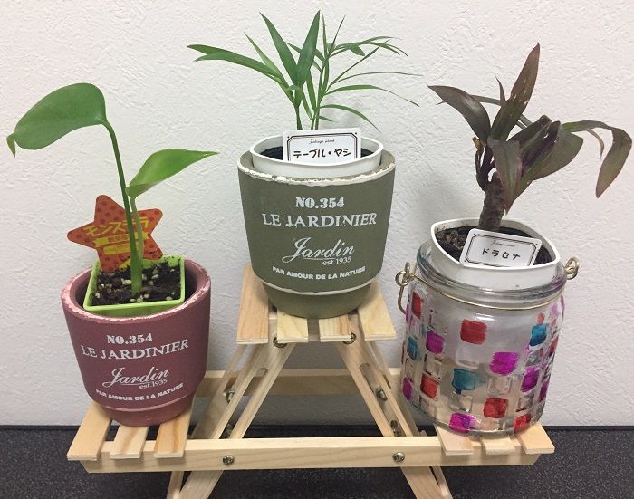 小物は何かと緑色のものが多く、先日は部屋の片づけついでに100円ショップで観葉植物を買ってきました!