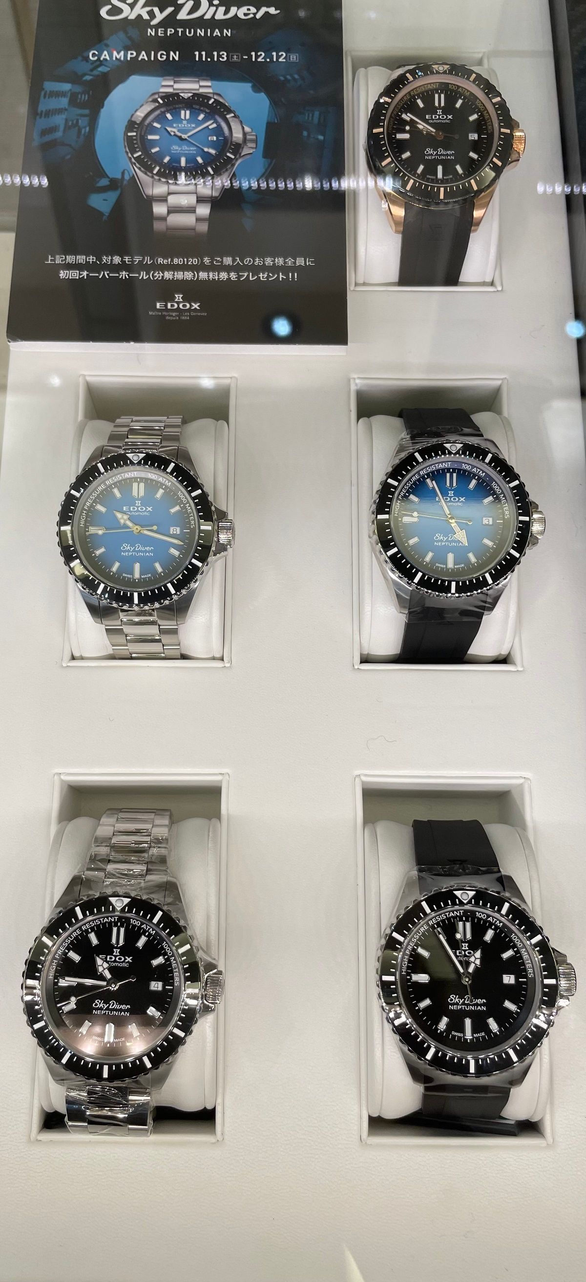 また、期間限定キャンペーンとしてEDOXでは11月13日(土)~12月12日(日)までの期間中に対象モデル(Ref.80120)をご購入のお客様全員に初回オーバーホール(分解掃除)無料券をプレゼントしておりますので、この機会にぜひお気軽にお立ち寄りくださいませ。
