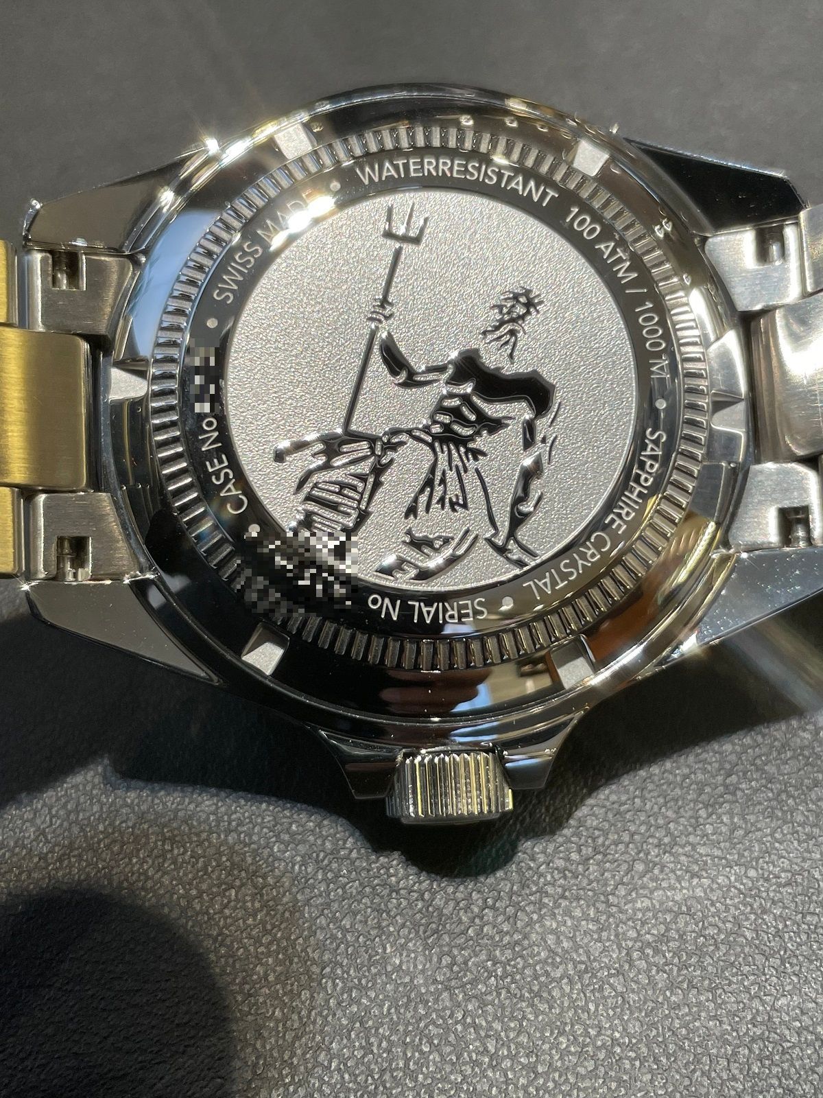 ケースバックにはネプチュニアンの名の通り、ローマ神話における「海の神・ネプチューン」、ギリシャ神話では「ポセイドン」が刻印されており、海を支配する力があると言い伝えられている海の神の強靭さを表現しています。