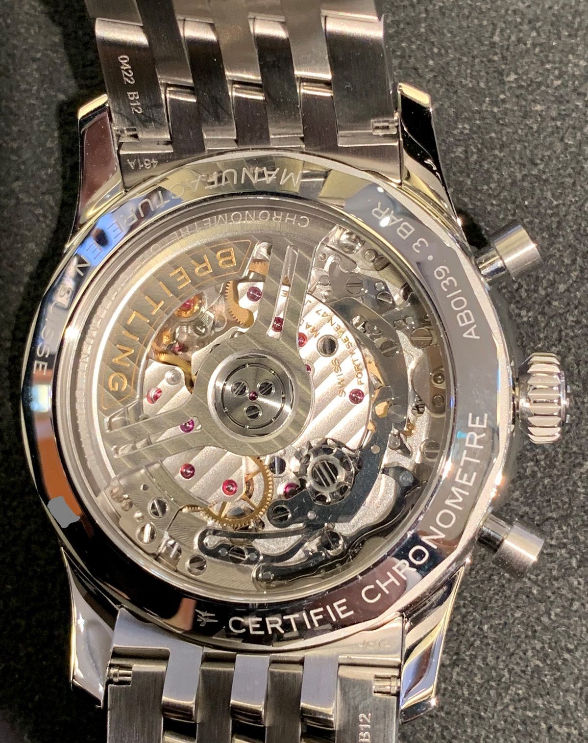 内部の機械は、41ミリでは初採用となります、ブライトリングが誇る自社ムーブメント「ブライトリング01」が搭載されました‼
