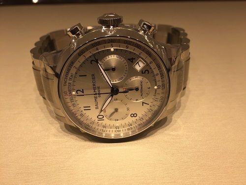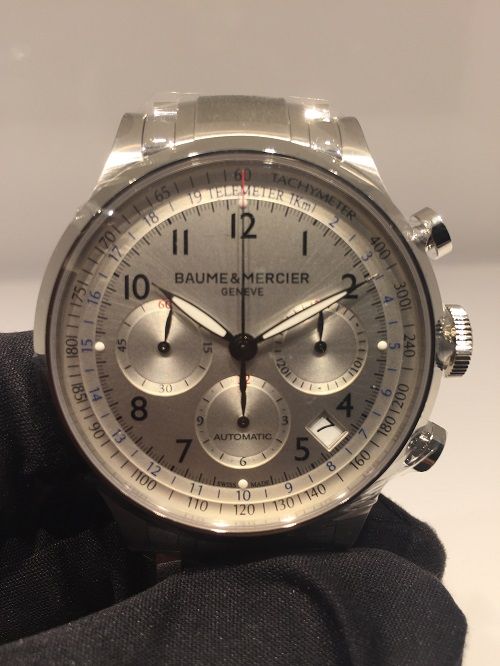 スポーツテイストを伝える力強い輪郭のシルバーボディ&フェイス、ケープランド自動巻きクロノグラフ。
