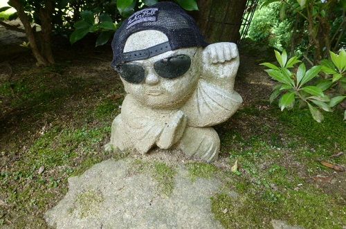 登る途中に弘法大師空海が修業したとされる場所に霊火堂があり、そこでお洒落なお地蔵さんを発見しました。