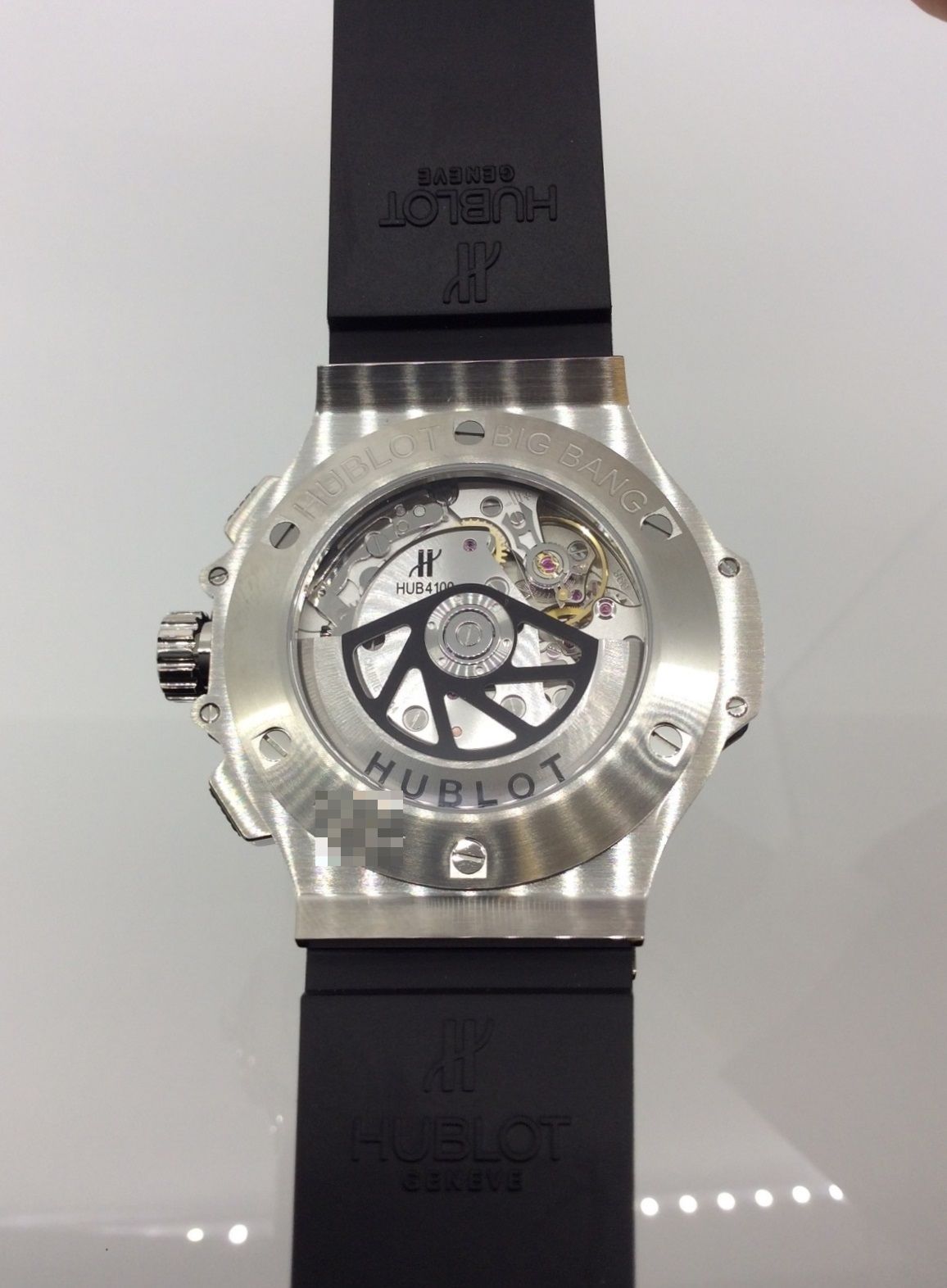 ケース裏もスケルトンでローターにHUBLOTマークも入り、外した時の楽しみもありますね!!