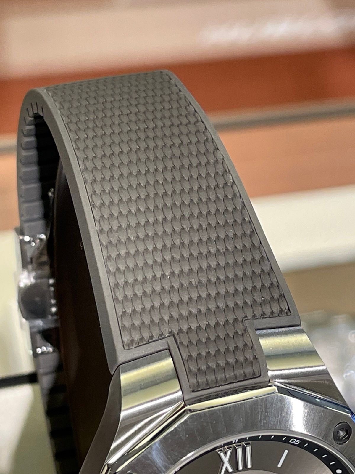 グレーのラバーストラップと、ケースとの一体感は正に「ラグジュアリー・スポーツ」!!!