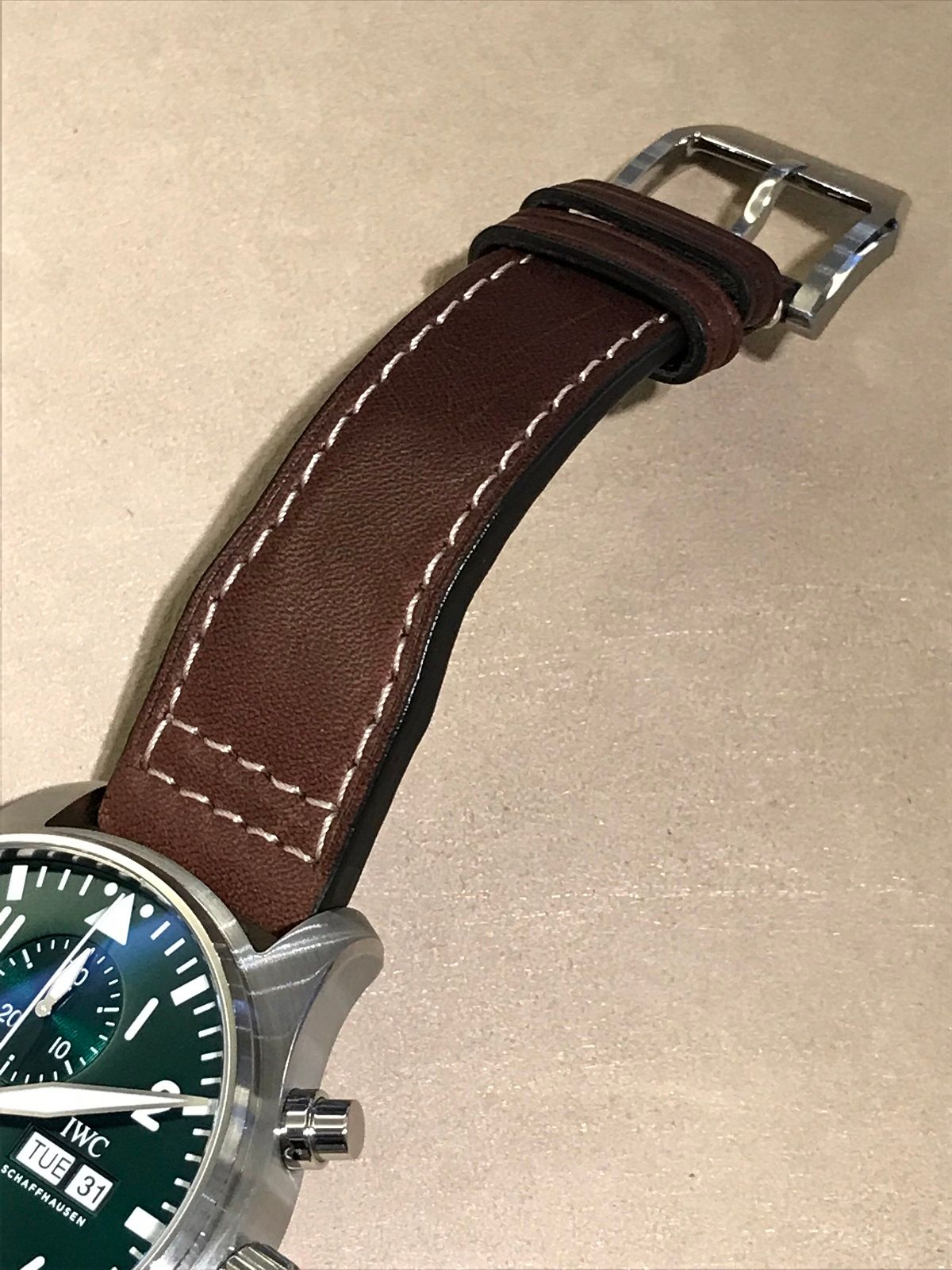 ストラップも肉厚のカーフスキンで、白のステッチというところがパイロットウォッチらしいですね!!