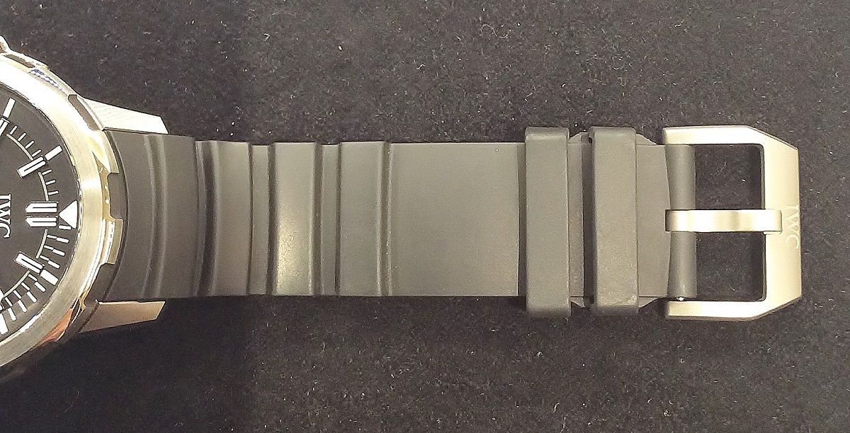 ダイバーズウォッチの為、IWCでは珍しいラバーストラップ仕様、留め金はきちんとホールドできる穴留め式にし、実用性を考慮した仕様になっています!!