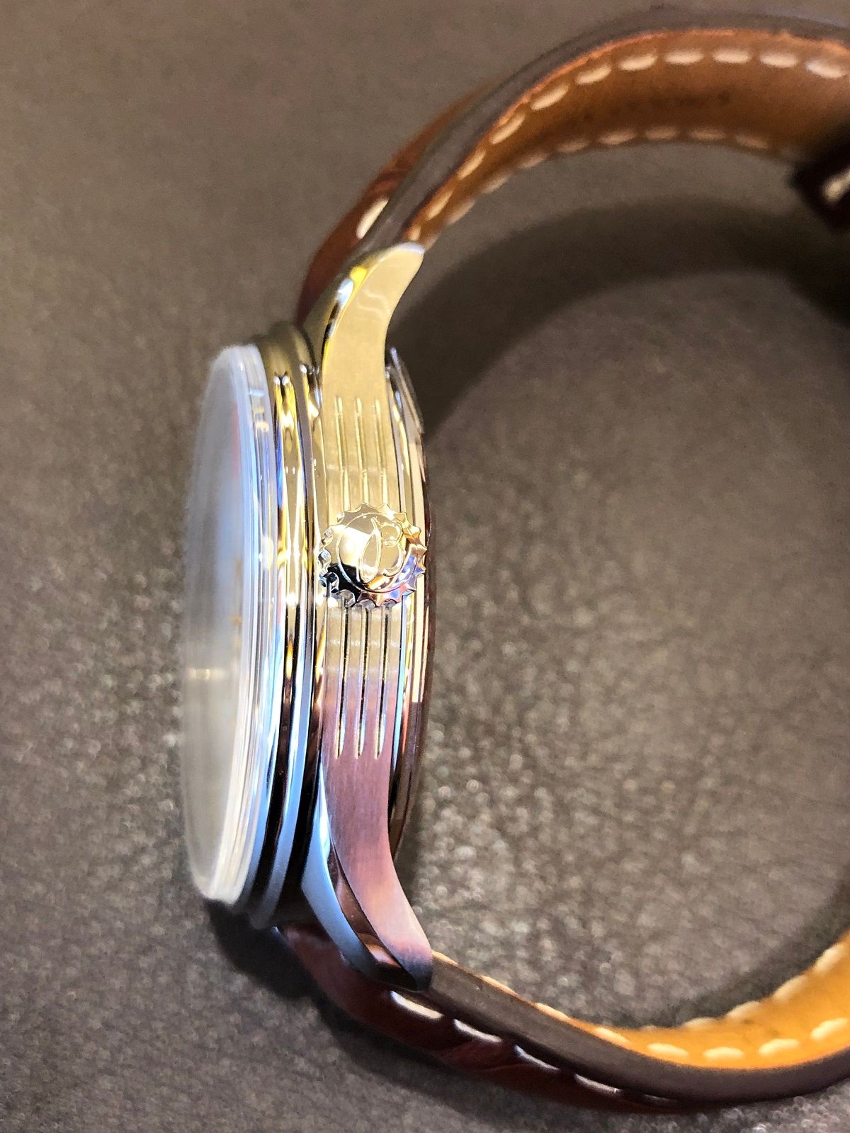 白ステッチもアクセントになっており、ダイアルとも色が近いので、全体的に統一感も出ています!!
