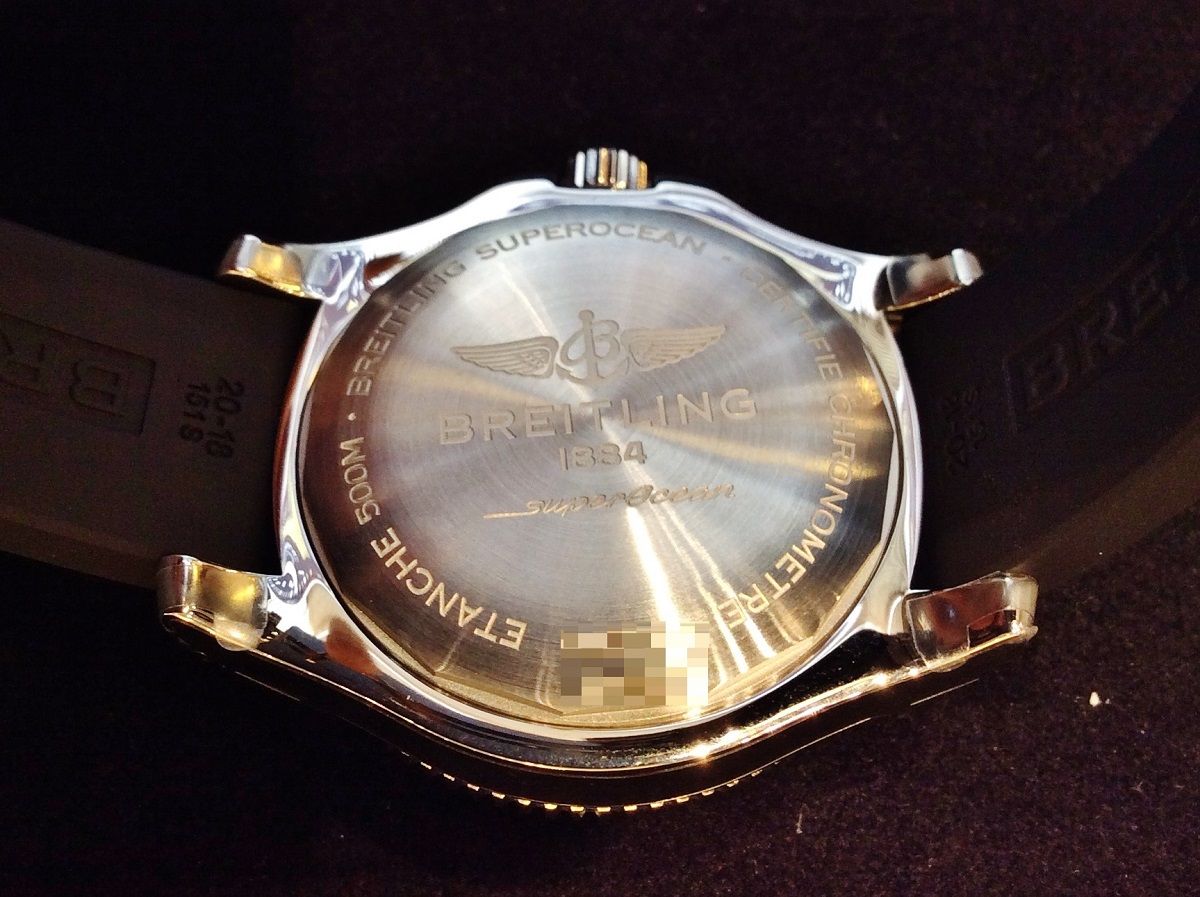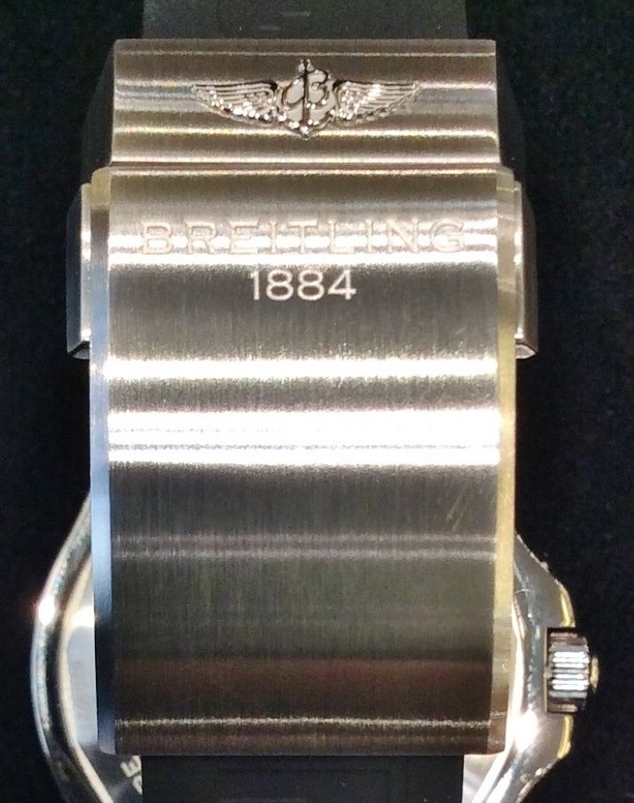 仕様:機械式自動巻きムーブメント(ブライトリング17)、ドーム型サファイアクリスタル(両面無反射コーティング)、日付表示、ラチェット式逆回転防止ベゼル、ラバーバンドにプッシュボタン式フォールディングバックル、500m防水。