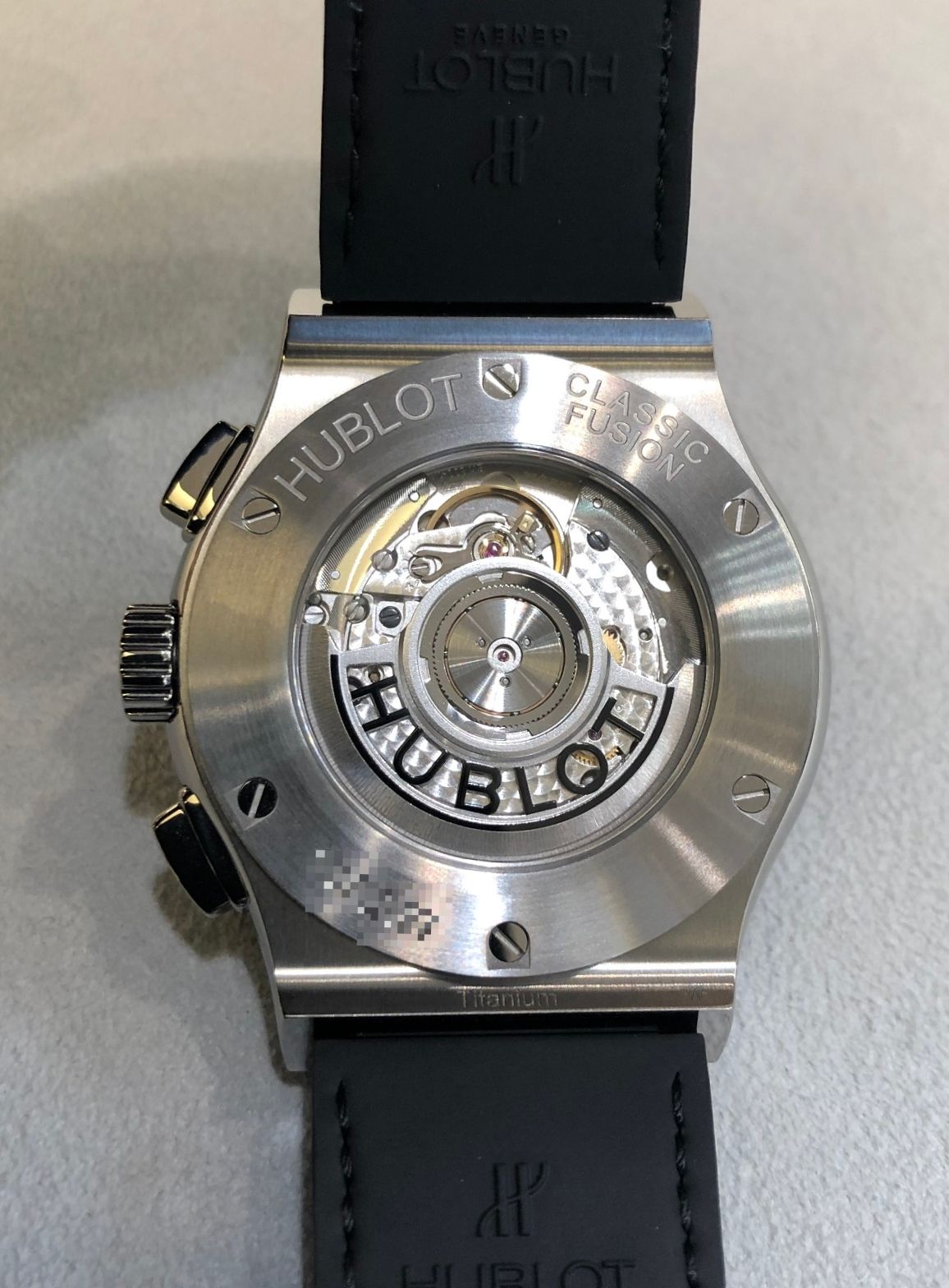 高級時計と言えばこの作りですが、HUBLOTマークのローターもついつい見入ってしまいますね!!