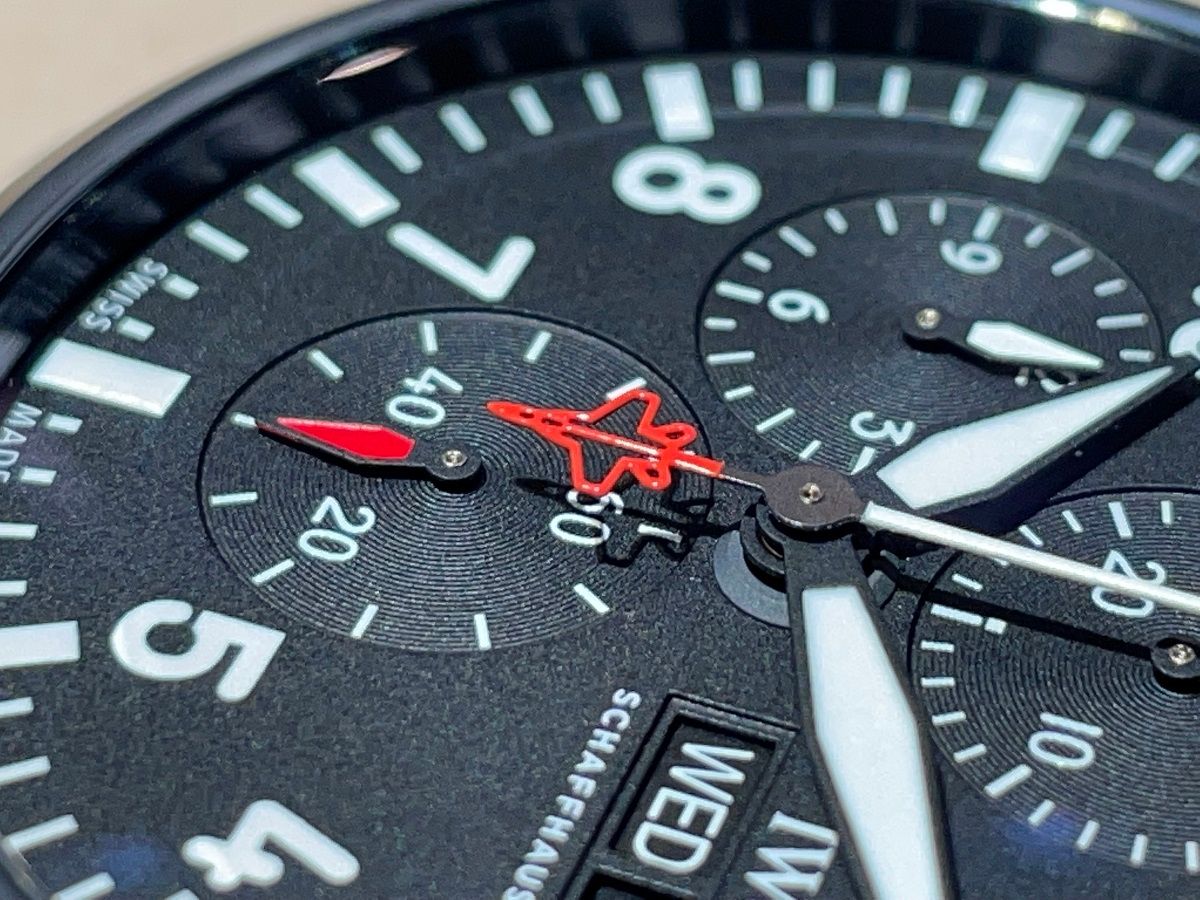 よく見るとクロノグラフ秒針にジェット機が!!