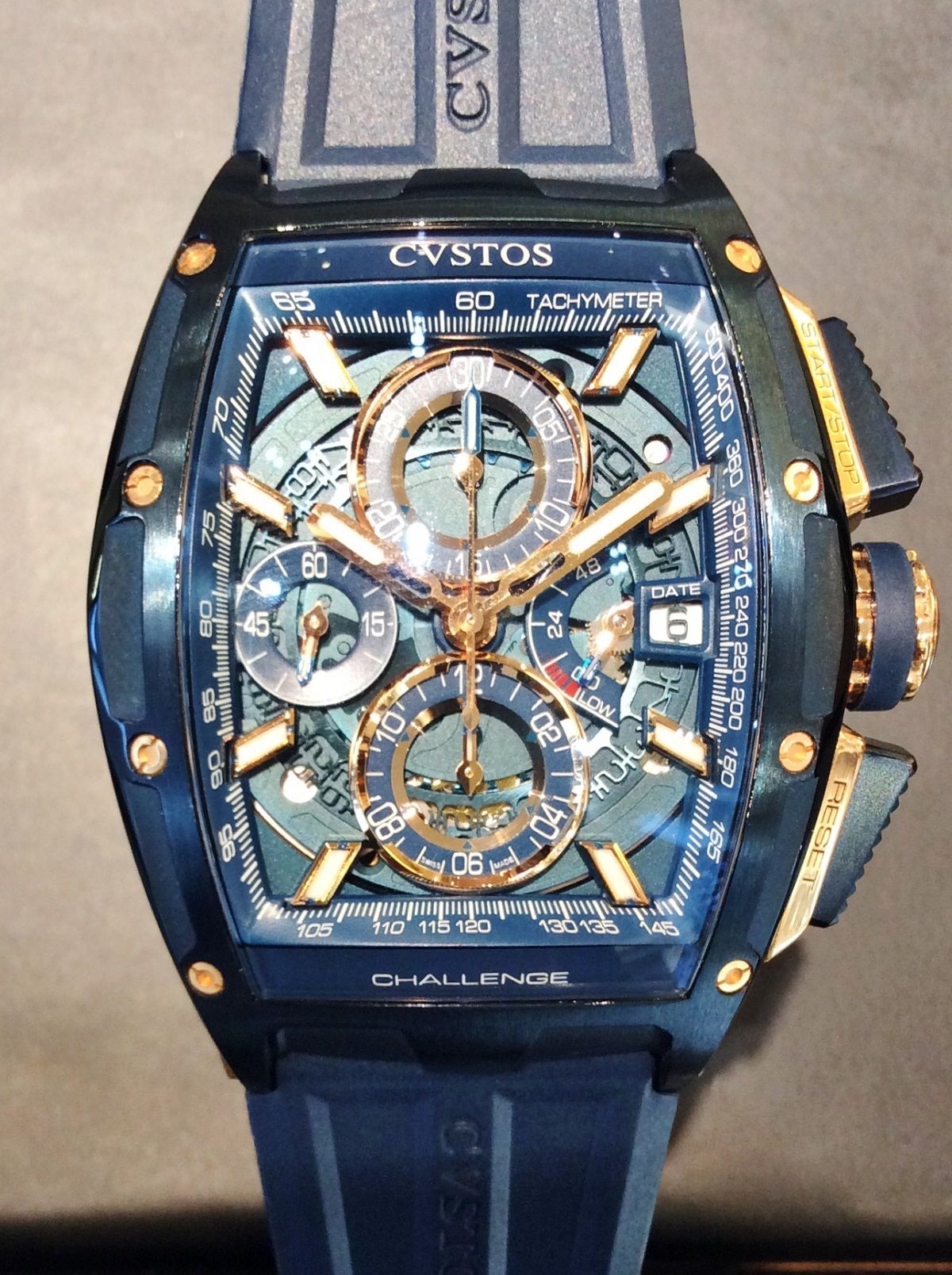 このチャレンジクロノⅡは今までケース色がステンレスシルバーやブラックがメインのモデルですが、クストスお得意の綺麗なブルーを載せることで、今までの魅力をさらに向上させています!!
