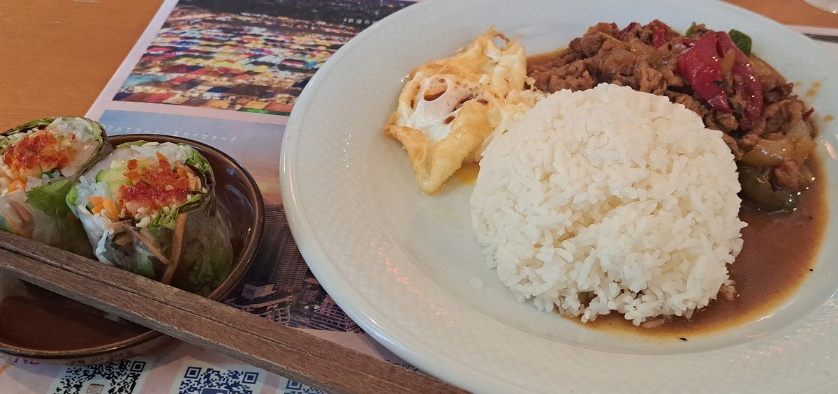 ガパオライスにランチ限定価格の生春巻きもつけました♪