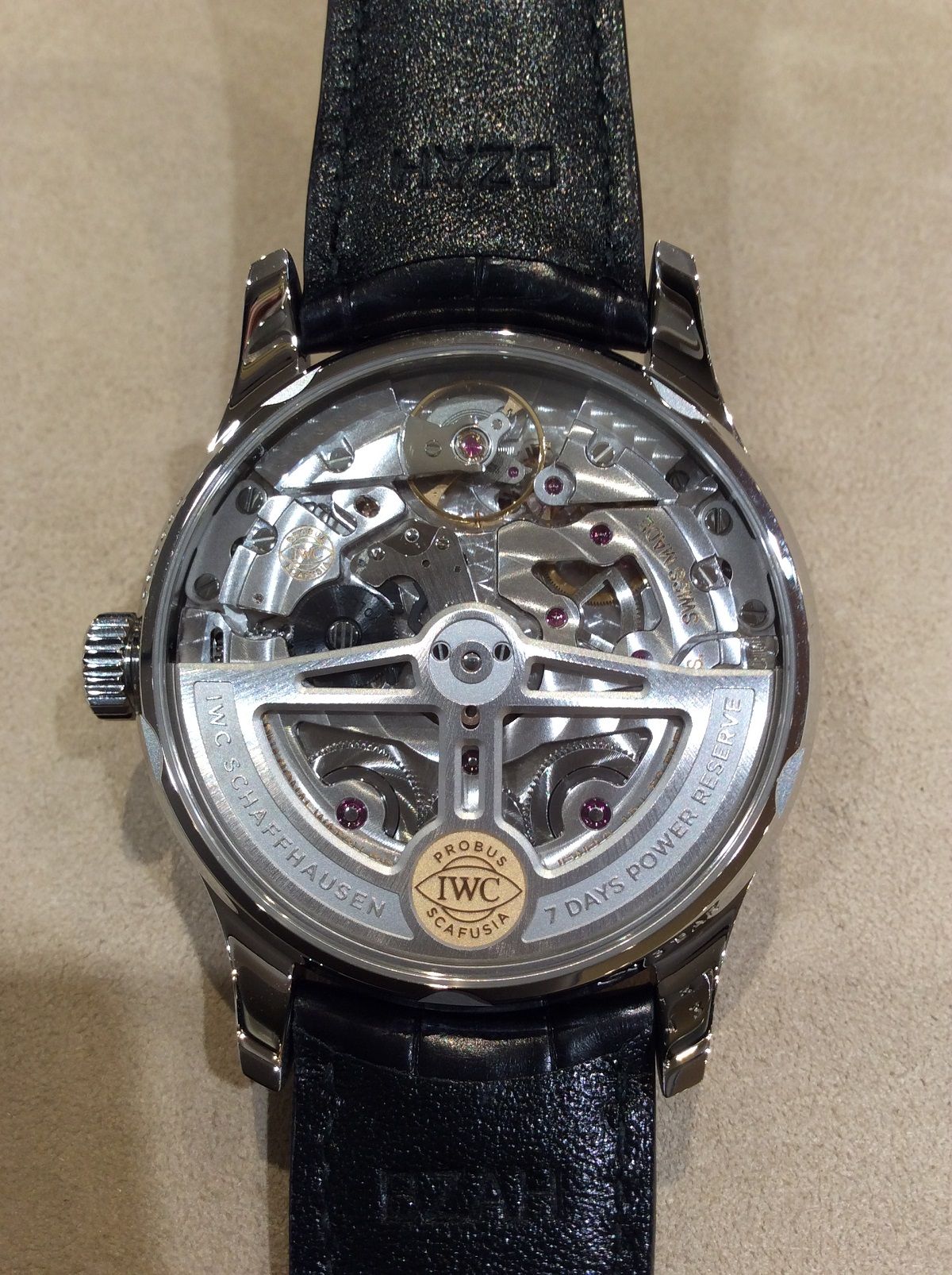 裏側がシースルーなのでIWCの自社製キャリバーを見ることができます。