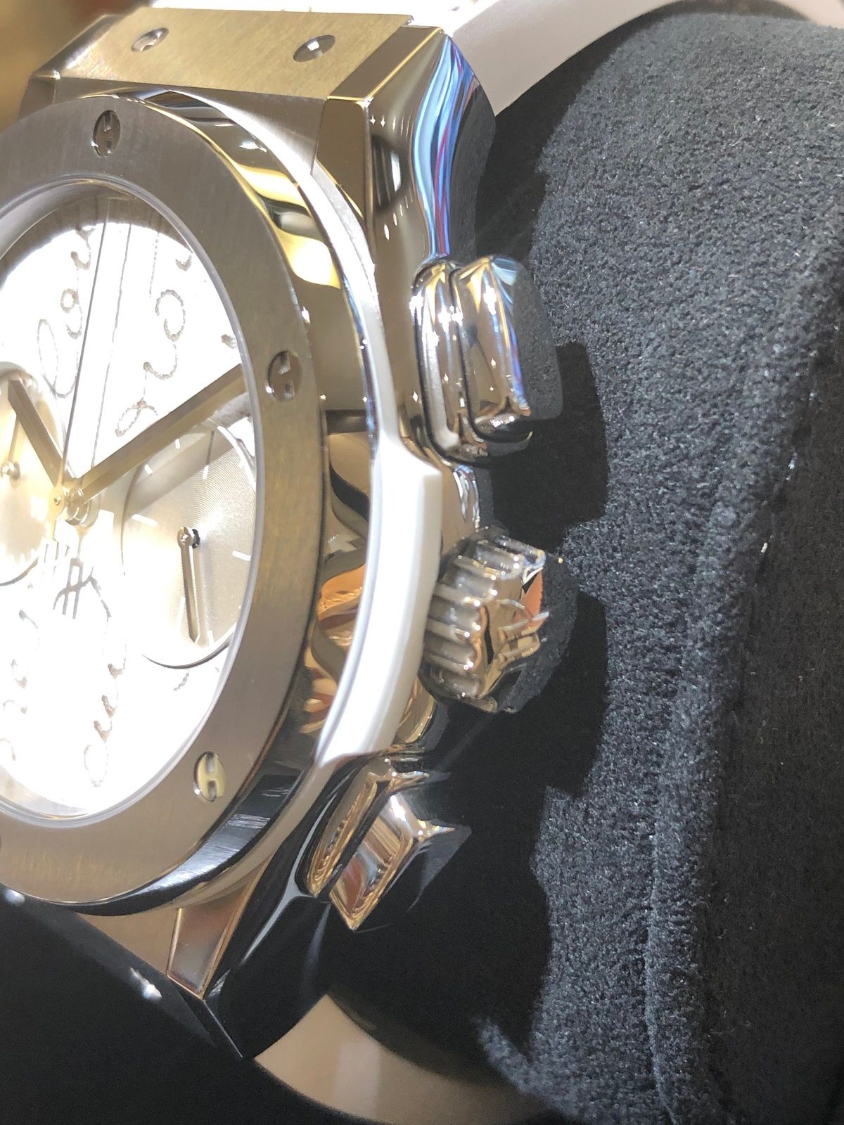 またホワイトの時計なのでコーディネートのアクセントにもなりますし、ウブロとベルルッティのコラボレーションだからこそ出せるこの存在感も魅力的です!