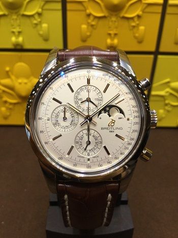 ブライトリングの中でもクラシックな文字盤で革バンドがよく似合いますね!