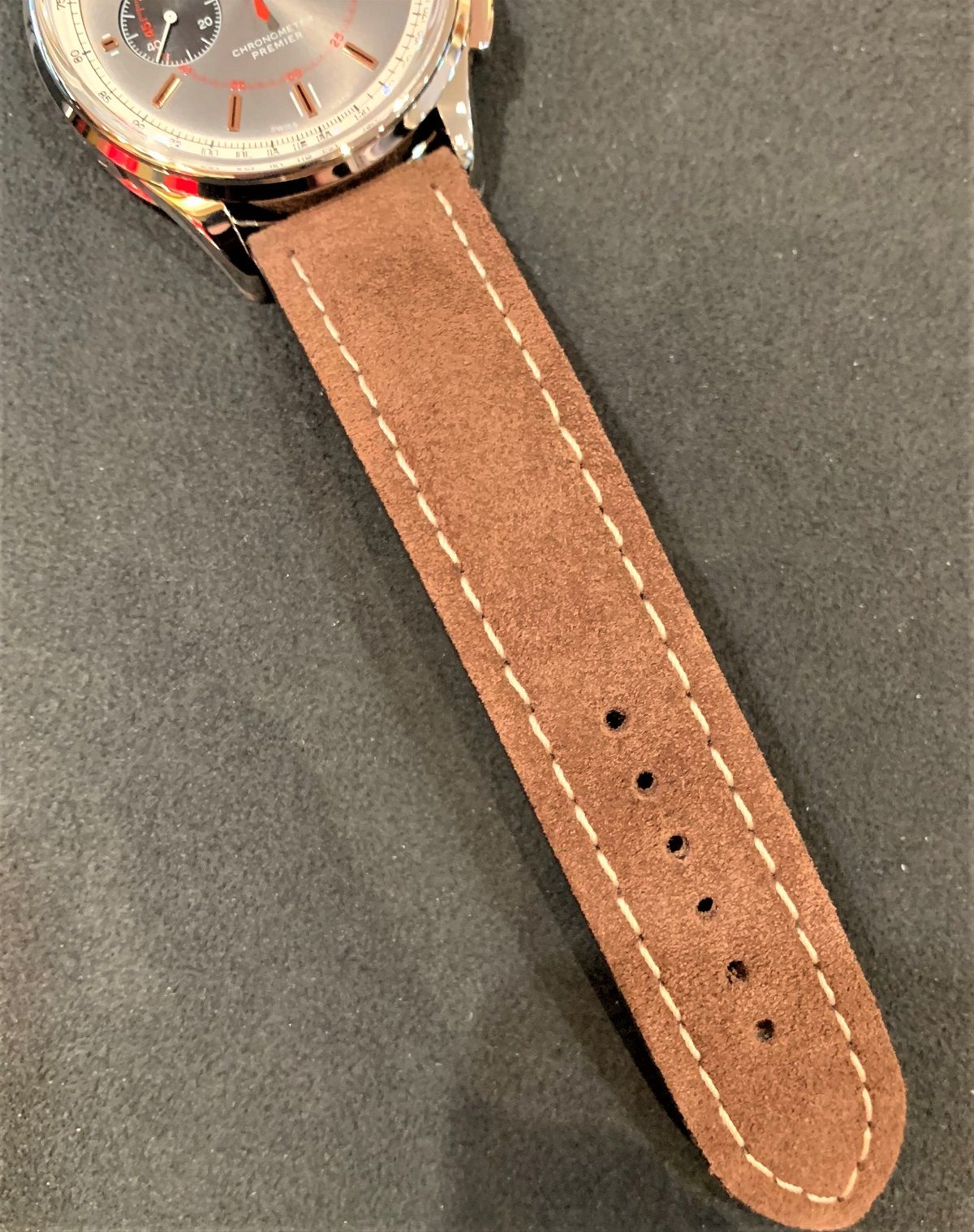 また、こちらも通常モデルには無い仕様で、ヴィンテージ感溢れるカーフスウェードのストラップが装着されています‼