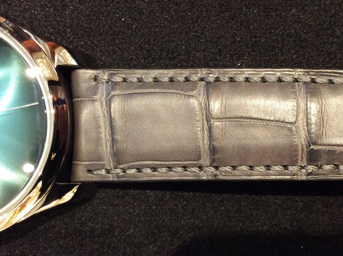 バンドはこれまたお洒落なグレー色のアリゲーターを採用し、文字盤のお洒落なカラーと相まって、高級感とカッコ良さ、世界限定50本という希少性など手に入れる要素満載のこのモデル!!
