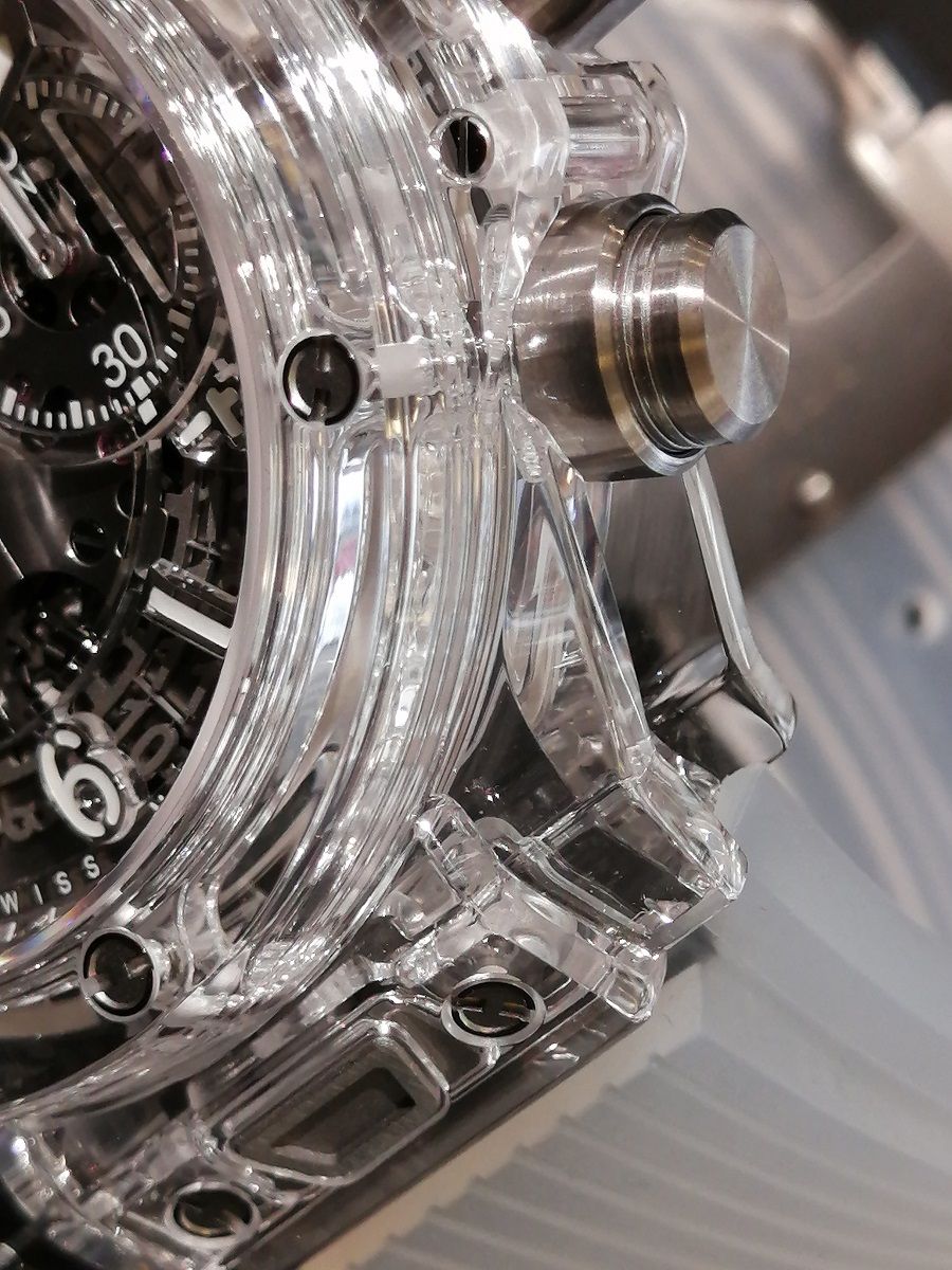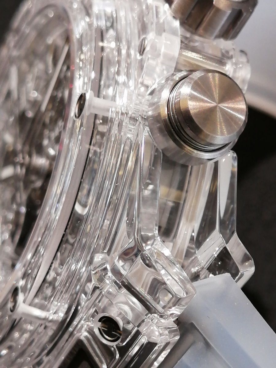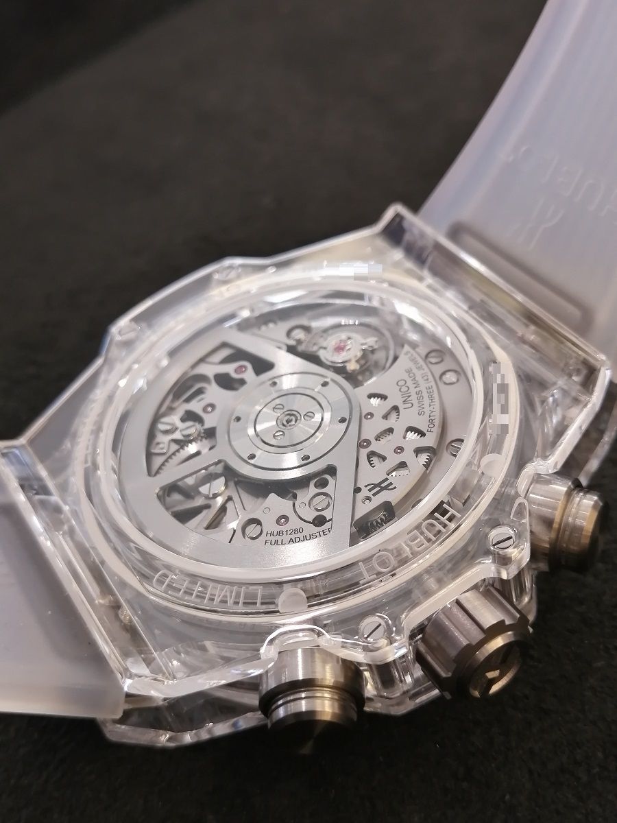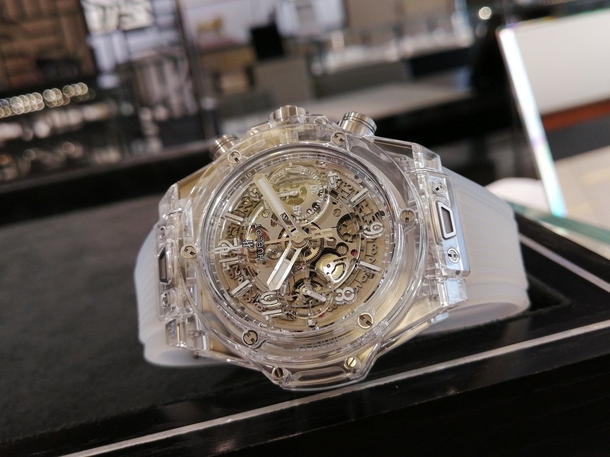 ケースやベゼルにいたるまでサファイヤクリスタルガラスを使用したモデルになります。