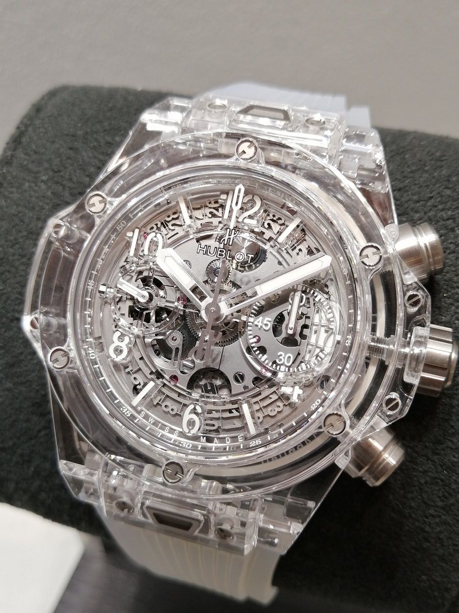 しかもこのサファイア、軽いんです。見た目から着け心地まで驚きと感動を与えてくれます。さすがウブロ。