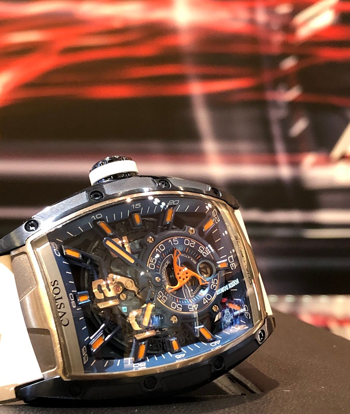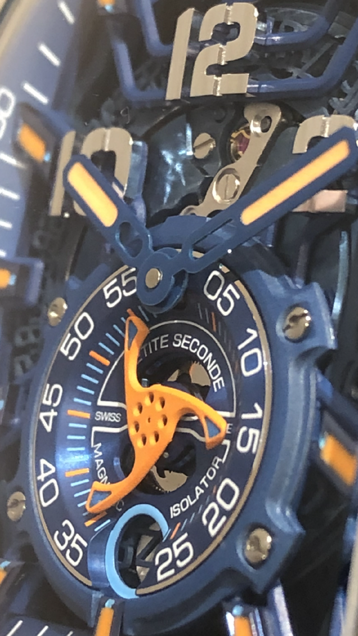 メカメカしい文字盤は単なるスケルトンでは無く、多重構造の立体的でスタイリッシュなものとなっています。