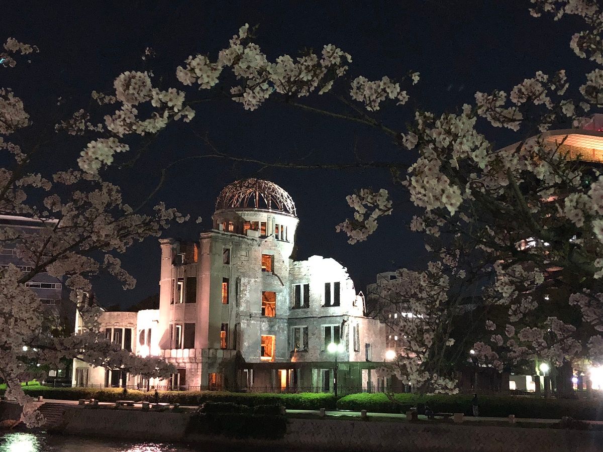 盛り上がると言えば、やはりお花見!今回は、平和公園に夜桜を見に行きました!