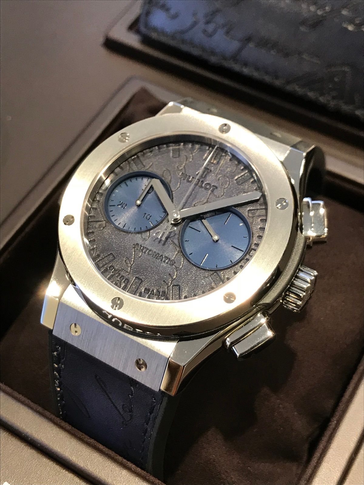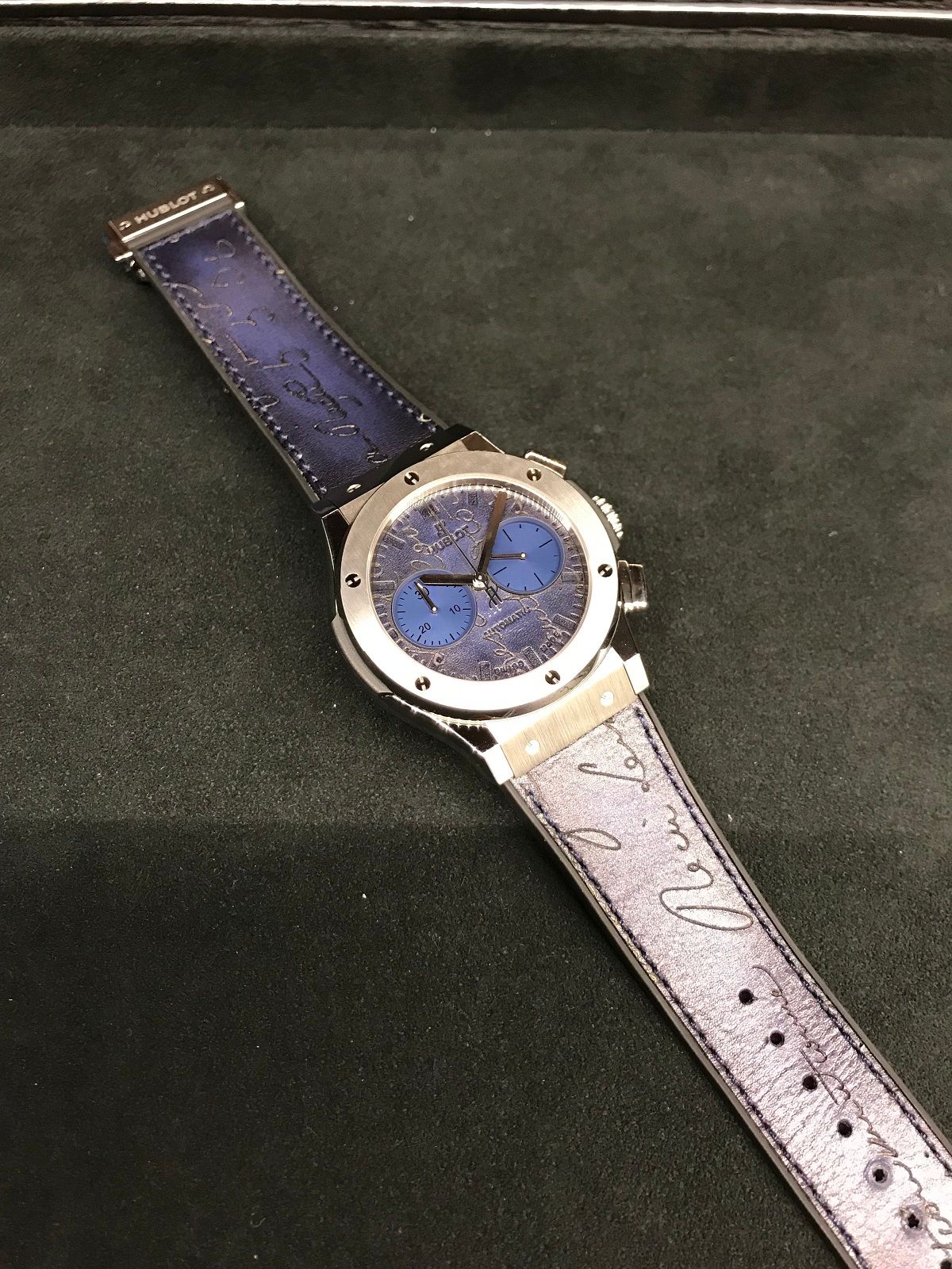 クラシック・フュージョン クロノグラフ ベルルッティ スクリット ブルー