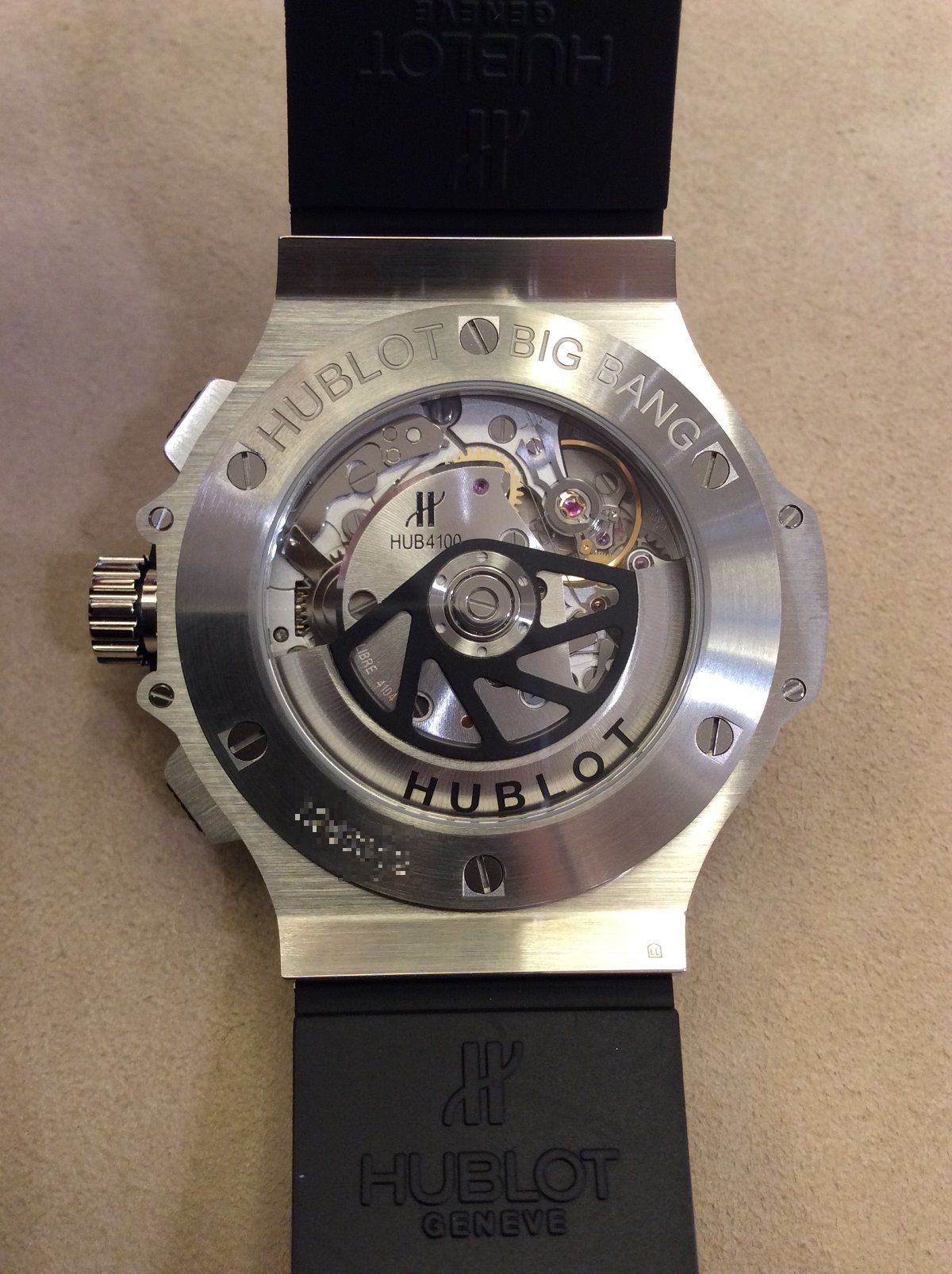 シースルーバックから見えるウブロの文字が書かれたローターがおしゃれです!!
