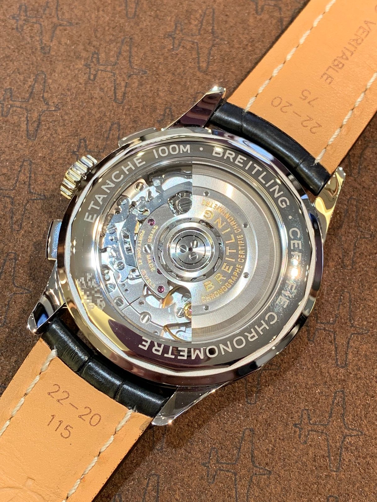 シースルーバックになっており、ブライトリングの自社キャリバーB01が見えます!