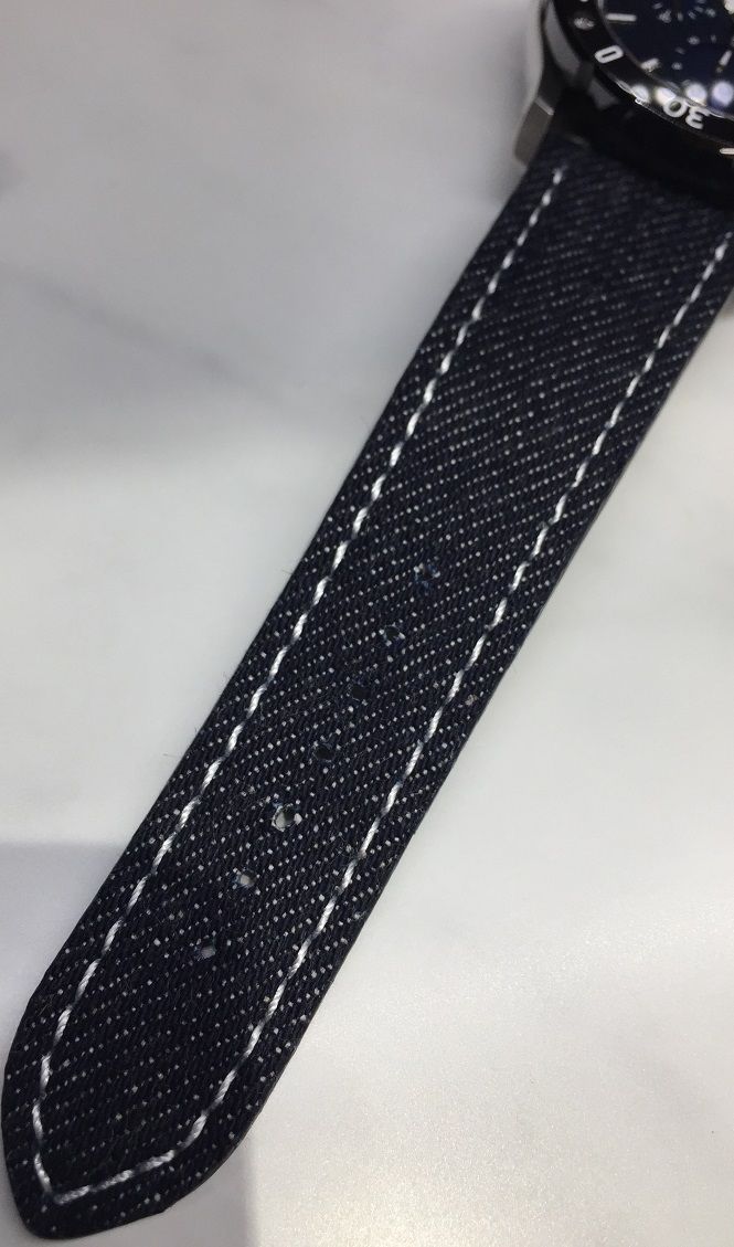 ラバーやメタルブレスレットとは違うデニム生地が腕元をカッコよく彩ってくれます。