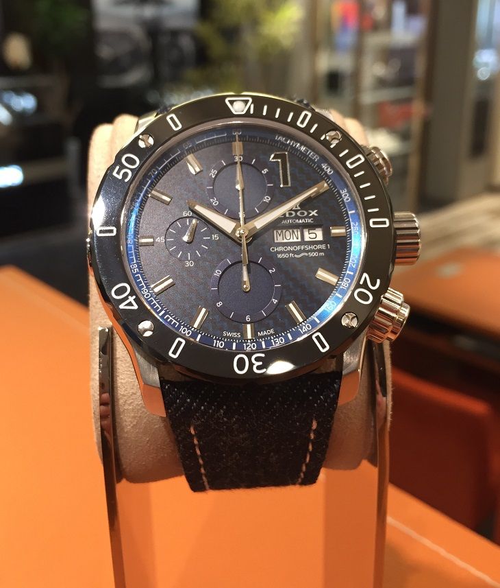 EDOXのクロノオフショア1 クロノグラフオートマティック デニムストラップモデルです!