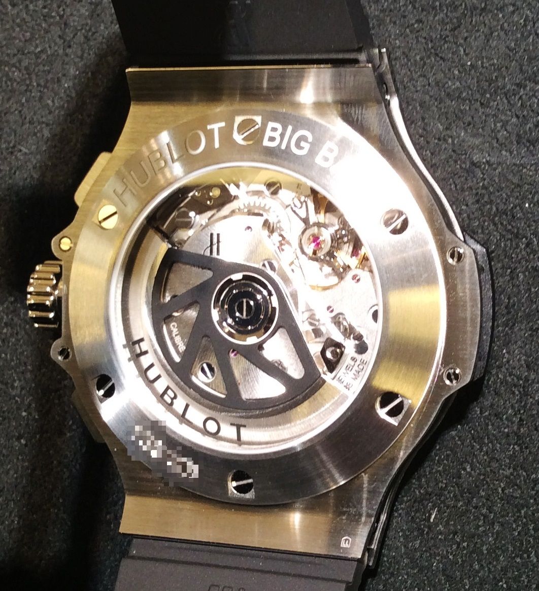 裏蓋から始まり、幾層にも違った素材を重ね合わせて作るこのケースはウブロの特徴です!!