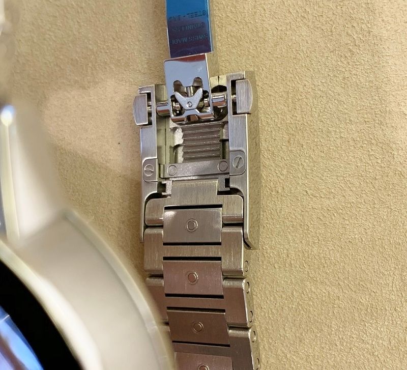 また、このモデルに装着されている金属バンドのバックル部分にはご自身で微調整ができる装置が付いおり、クイックにその場で微調整が可能です!!