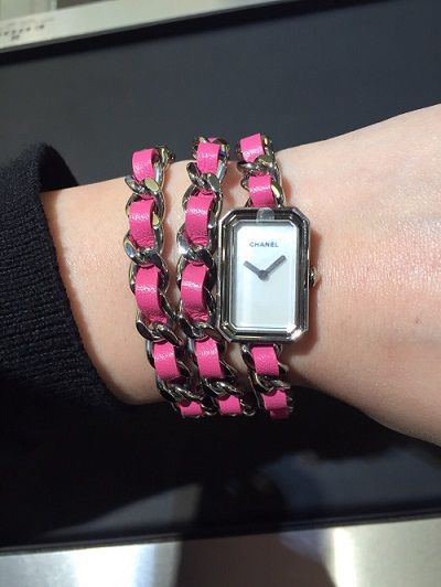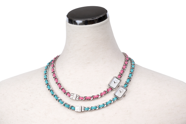 チェーンに編み込まれたピンクとターコイズのレザーは、ポップアートやシャネルのネイルエナメル「ヴェルニ」にインスパイアされた独自のカラーリングで、ダイヤルの上品なマザーオブパールと融合し、手もとをスタイルアップしてくれるファッション性の高いウォッチとなっています!