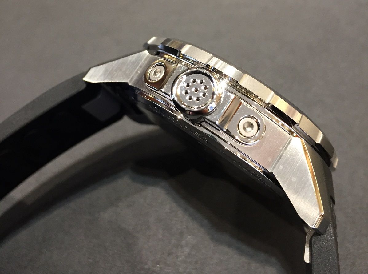 30気圧の高い防水性を誇り、飽和潜水にも対応できるようヘリウム・エスケープ・バルブを搭載。