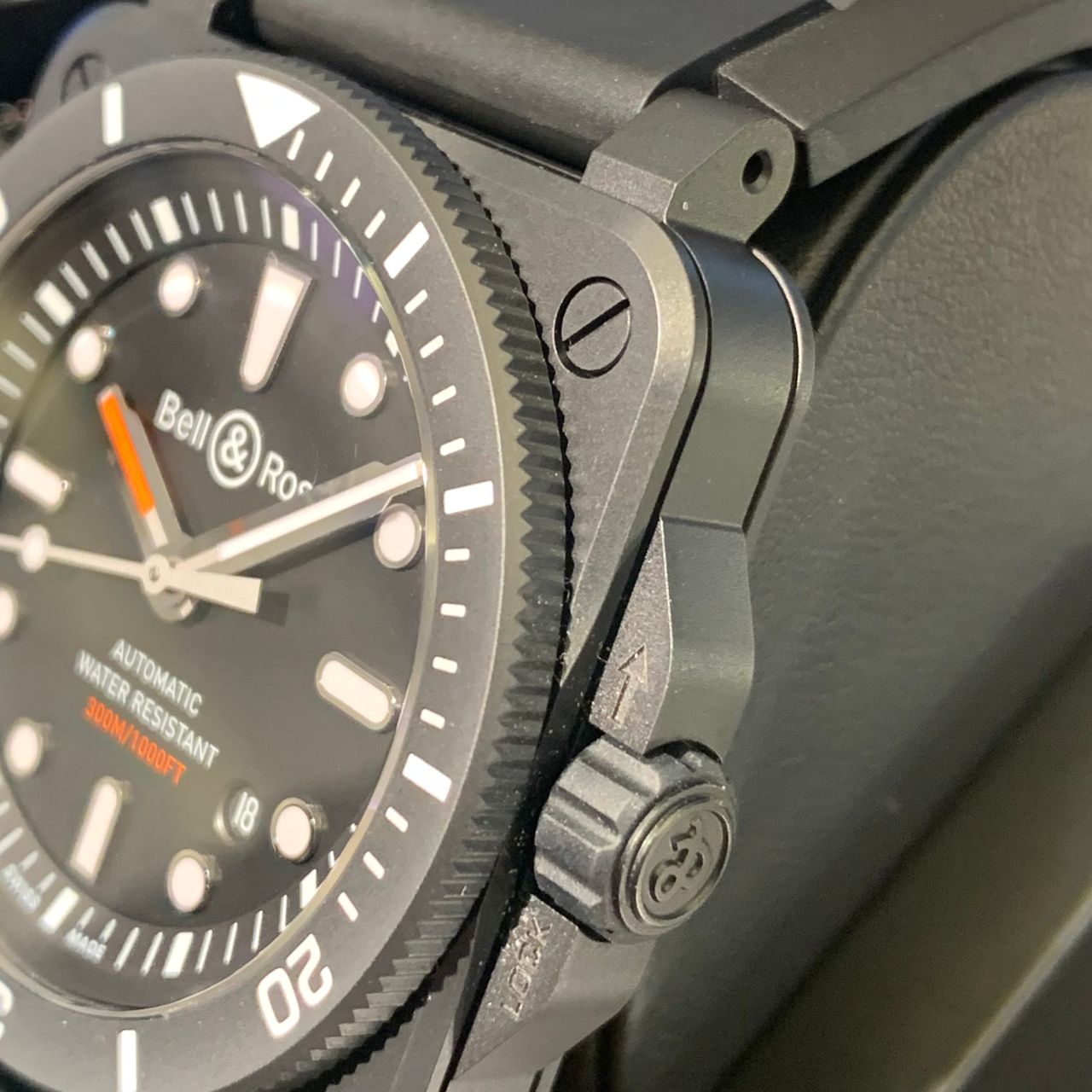航空計器パネルに用いられる無反射仕上げを思わせるマットブラックのセラミックはベルロスらしい雰囲気があります☆