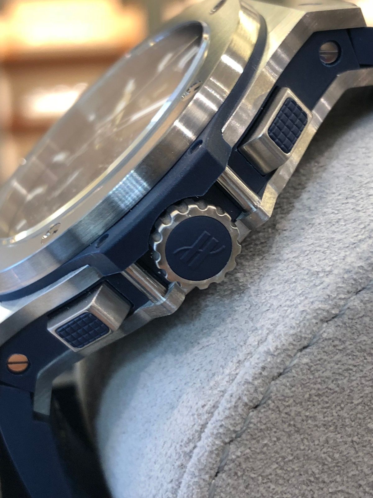 サイドから見ても、ウブロマークのリューズがカッコイイ!!