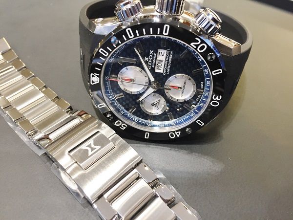 勿論クロノオフショア1の特徴である、500m防水、傷に強いハイテクセラミックベゼル、高級感のあるカーボンダイアルが採用されています!世界300本限定の特別モデルです!!