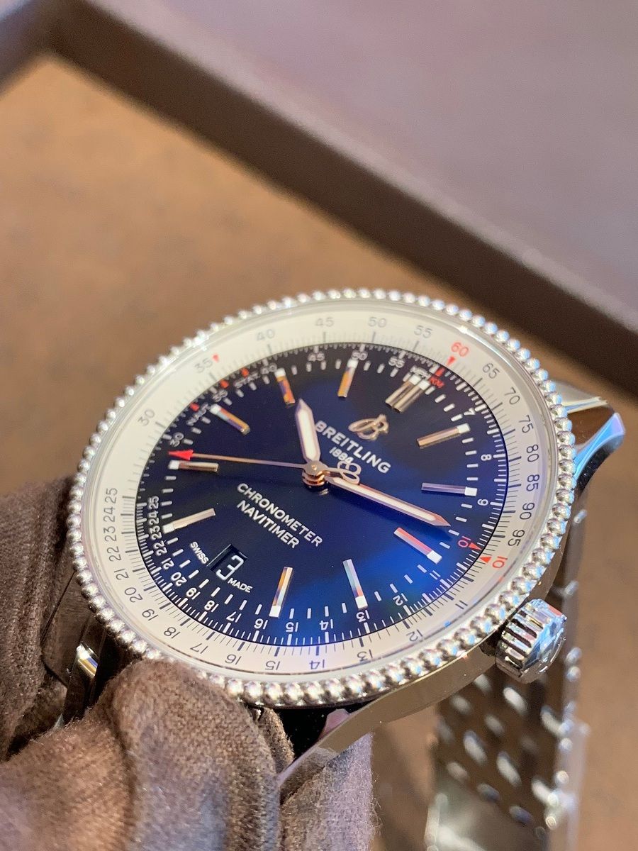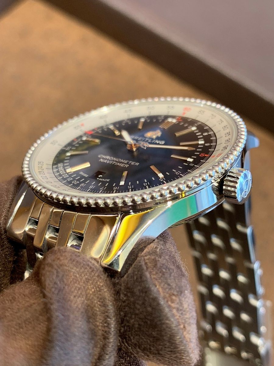 ナビタイマーの初期のモデルを彷彿とさせるこのベゼルは、高級感だけでなくクラシカルな印象を与えてくれます。