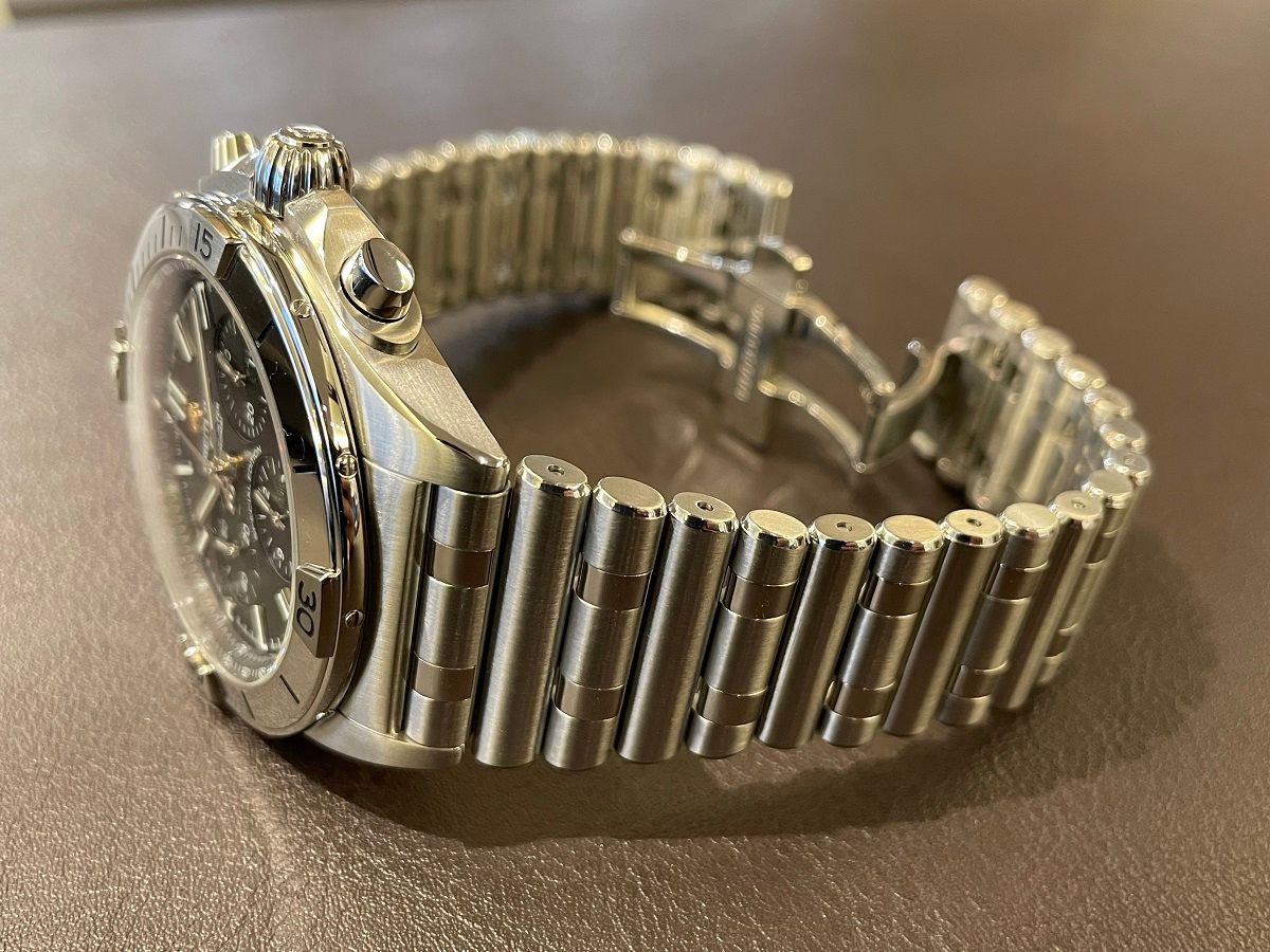 42mmの丁度良いケースサイズに、ラグからブレスレットにかけて滑らかな曲線が高い一体感を実現させています。