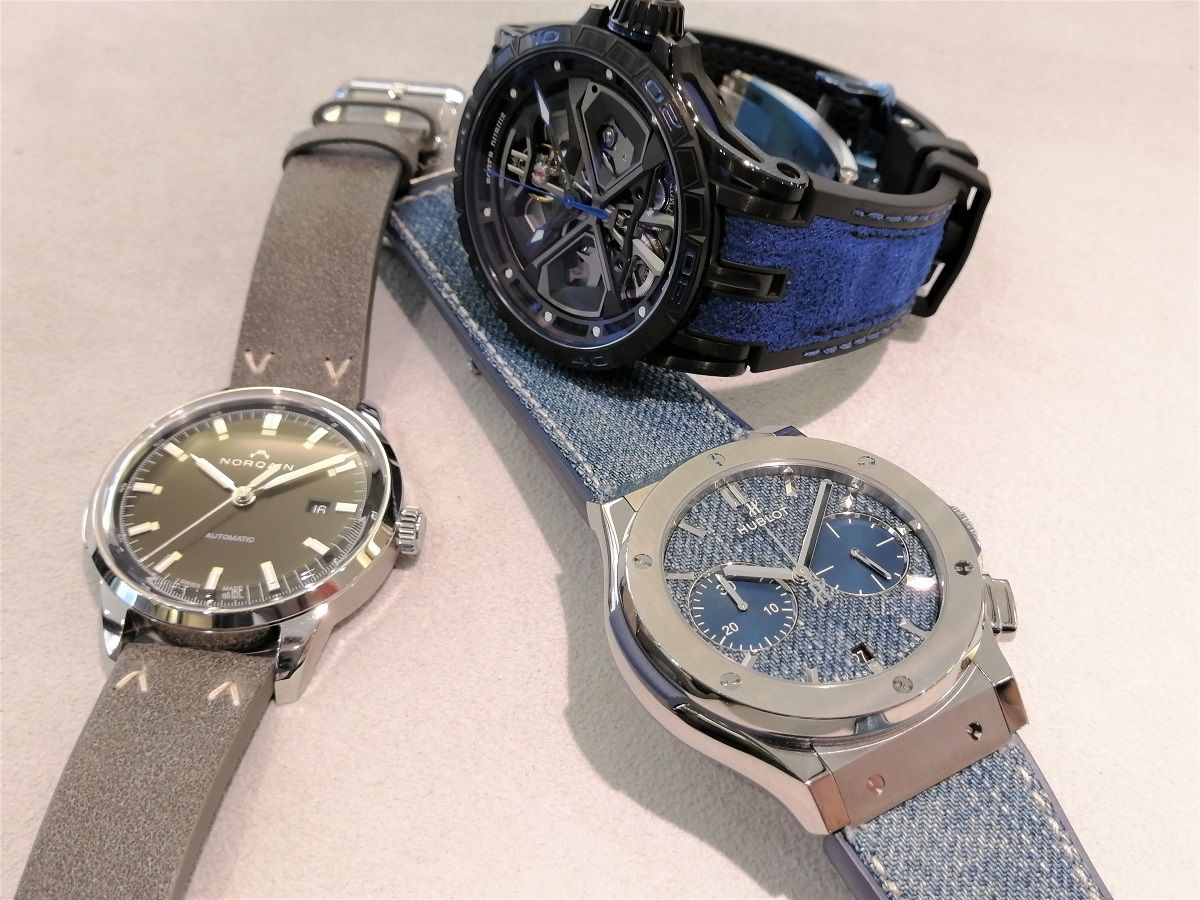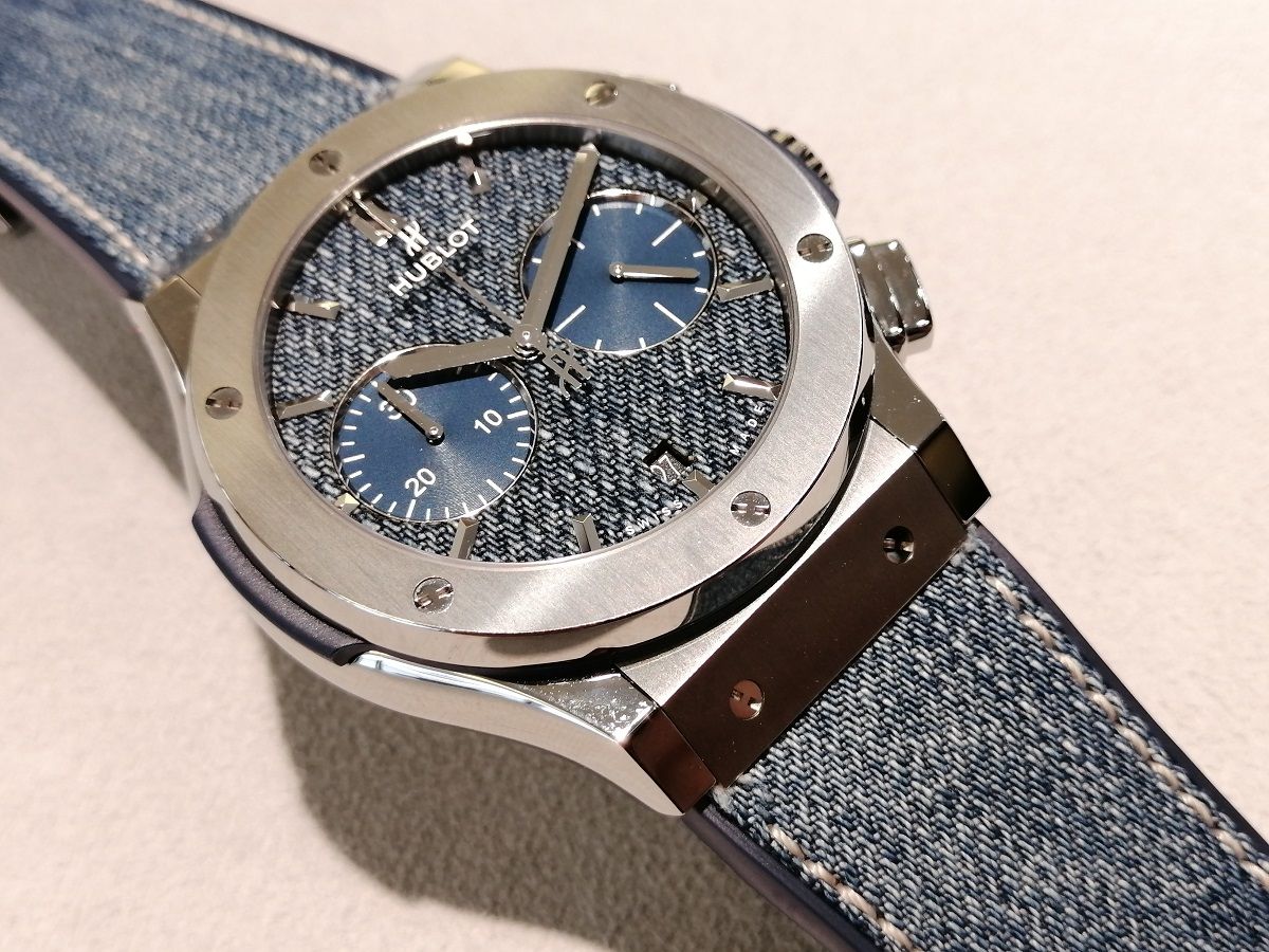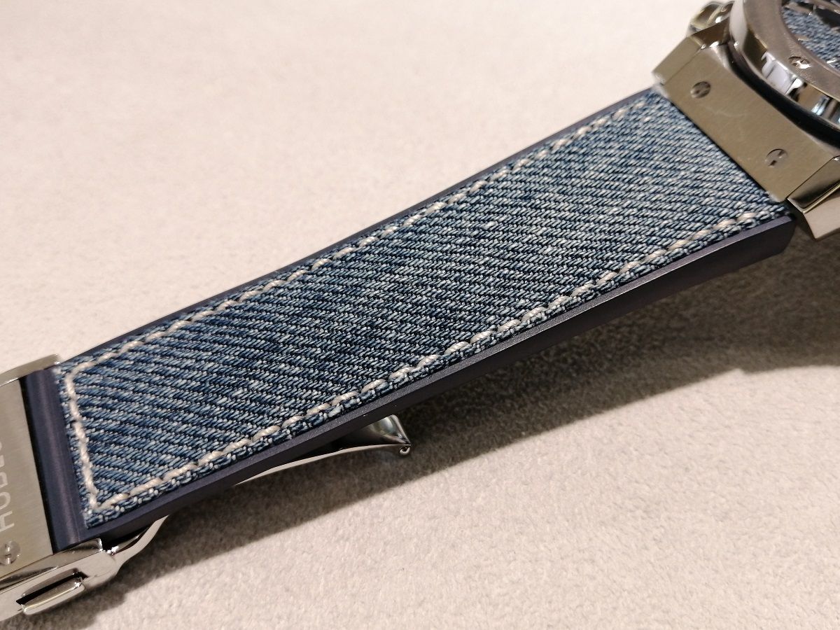 ウブロ クラシック フュージョン ジーンズ。デニム素材が目を惹くこのモデル、私大好きなんです。
