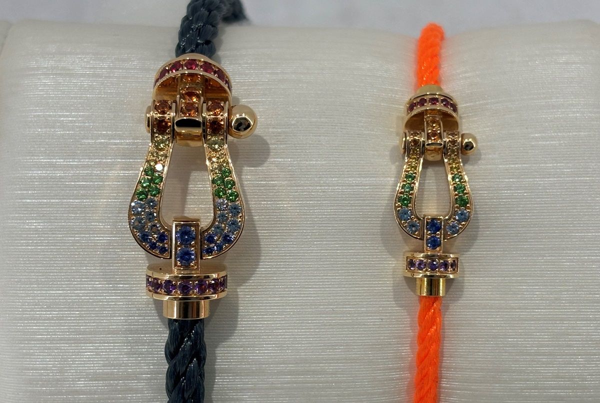 FREDはバックルのゴールドやダイヤセッティングの有無、コードのカラーの組み合わせで着こなしが変わるジュエリーです!
