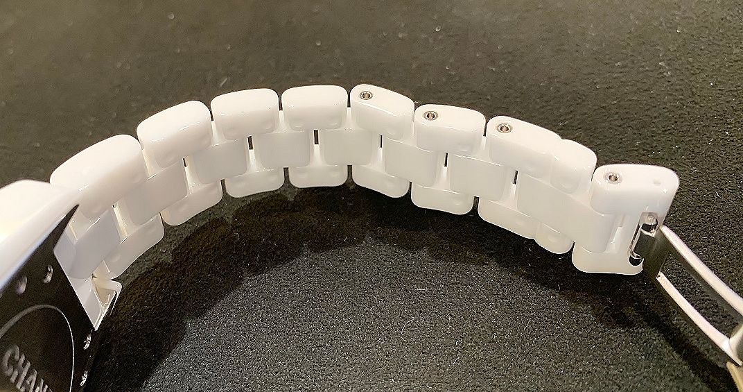 J12では様々な素材が候補に挙がっていましたが、シャネルがJ12に相応しい白色、黒色を出せたのが唯一セラミック素材だった為、J12にはセラミック素材が使われ制作されています!!
