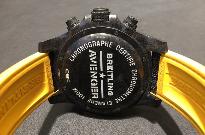 ベルトは特殊合成繊維を使用。裏側にはブライトリングカラーのイエローのラバー素材が貼り付けられています!