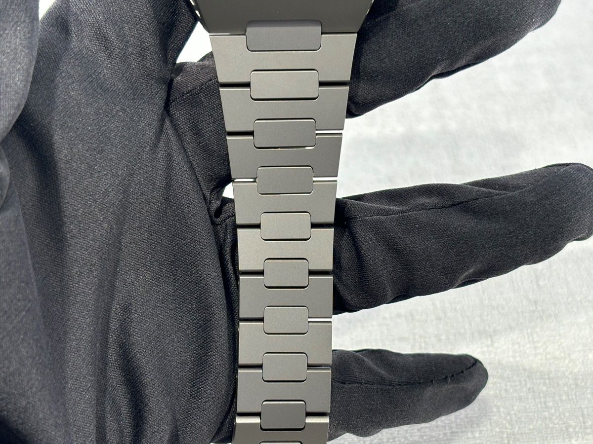 ステンレス製と同じようにしなやかで腕にフィットするつくりはそのまま、艶がなく通常のステンレス製ブレスや今年の新作のセラミックブレスとはまた違う輝き方をします。