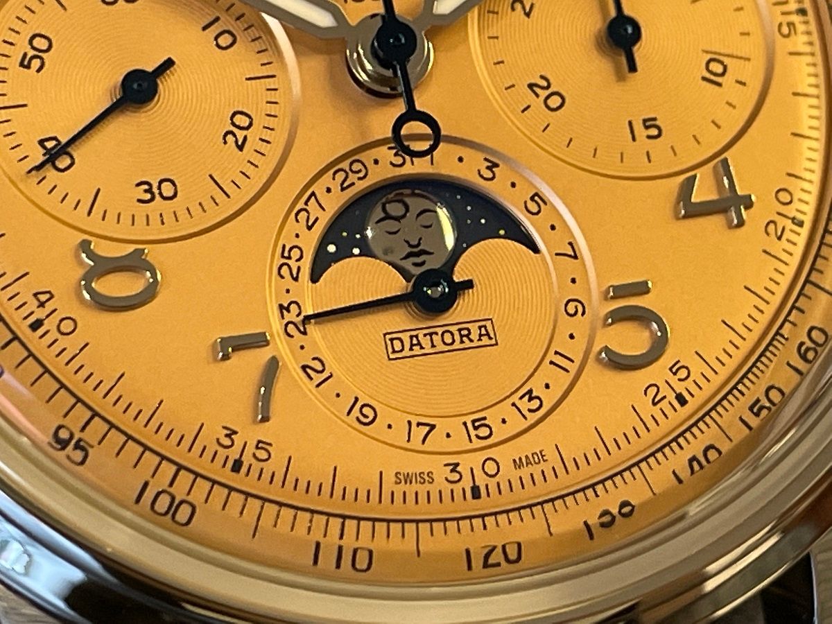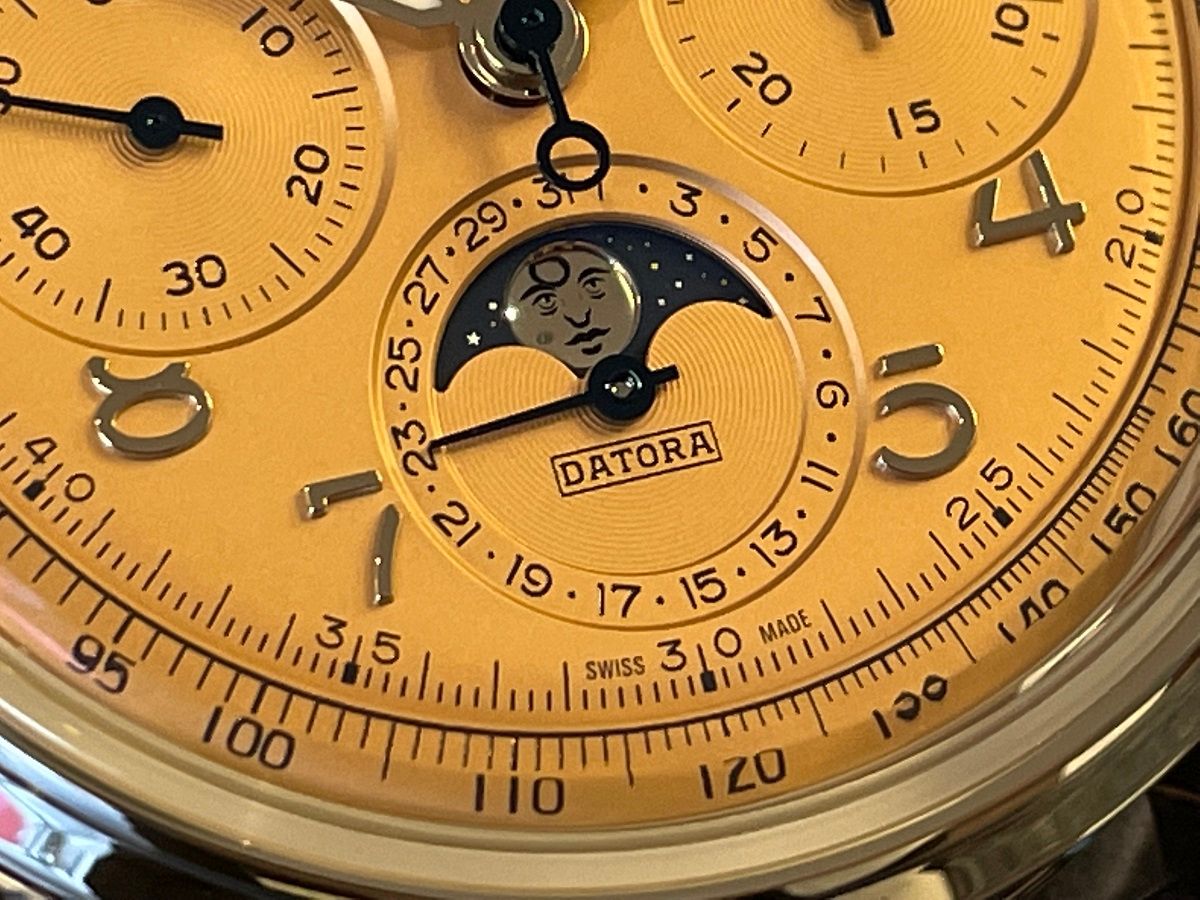 モデル名にある『ダトラ』とは何を指すのかというと、曜日・日付・月・ムーンフェイズを表示するフルカレンダーのことです。