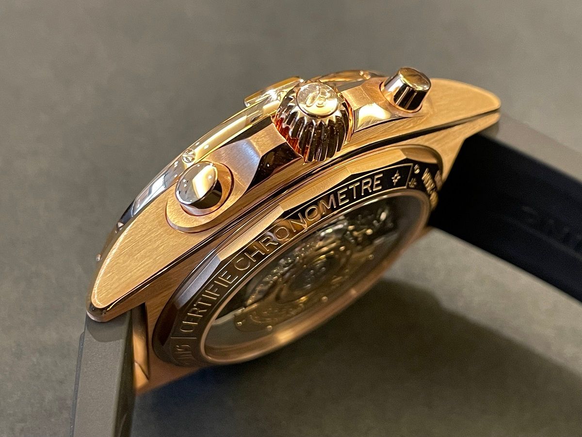 文字盤にアンスラサイトと呼ばれるダークグレーを使用する事で、落ち着いた雰囲気となりゴールドとの良いバランスが取れています。