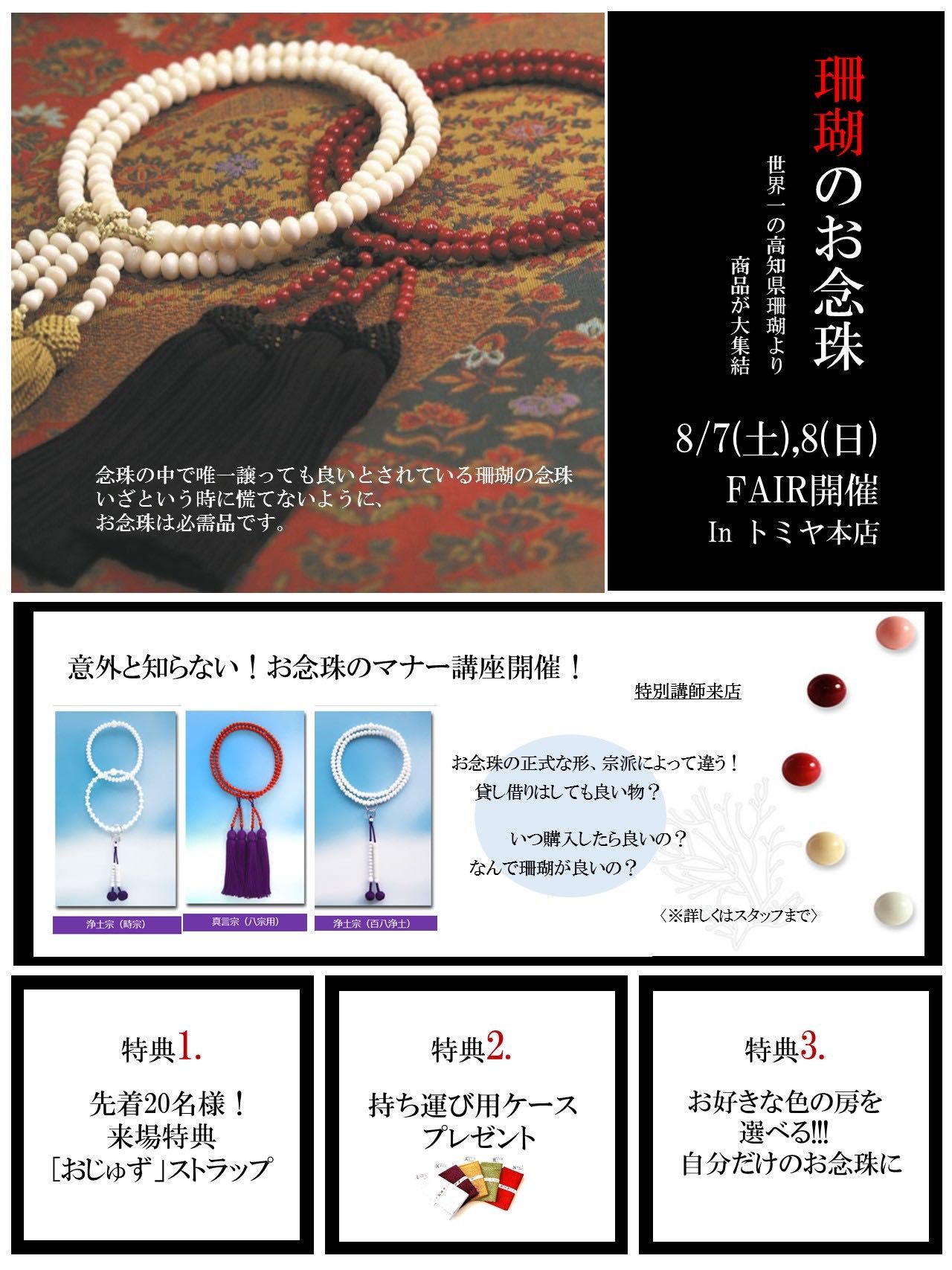 トミヤではまもなく7月7日(土)、7月8日(日)に珊瑚のお念珠のイベントを行います。